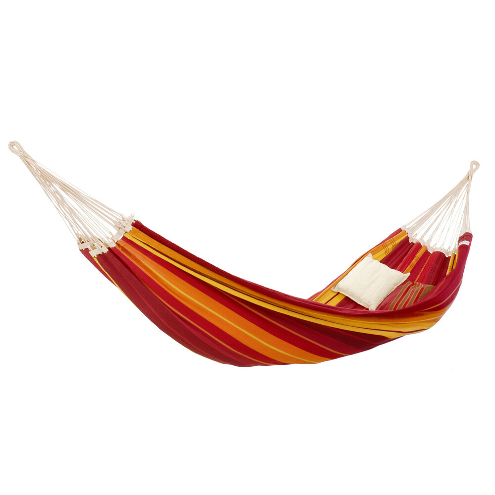 Büszkén mutatjuk be a világ egyik legnagyobb pamut függőágyát! Még a brazilok is meghajolnak nagyága előtt! Mintegy 6000 pamutszál felhasználásával készült a hat négyzetméteres, luxus kategóriás függőágy. Kiváló minőségű szövése mellett több mint 30 méter, vastagon fonott tartózsinór biztosítja, hogy a hatalmas fekvőfelület megfelelő szélességűre nyíljon. A Gigante úgy is értelmezhető, mint a két pont közötti tökéletes kapcsolat.