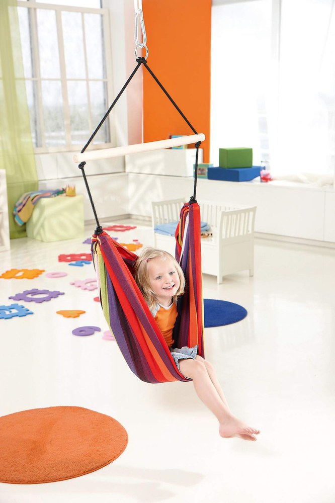 A Kid's Relax ideális hely a kicsiknek. Az élénk színű textil függőszék a gyerekszobában nagy örömet okoz. Kifejezetten gyerekeknek készült, egy emeleteságy alá is felakasztható.