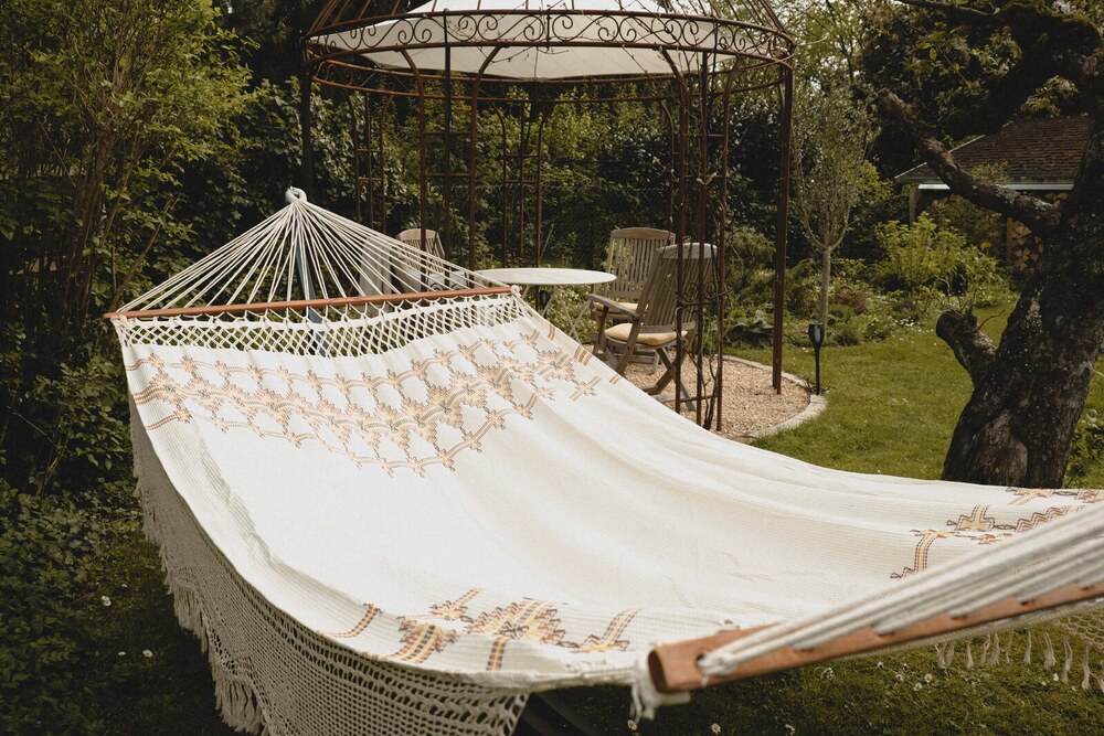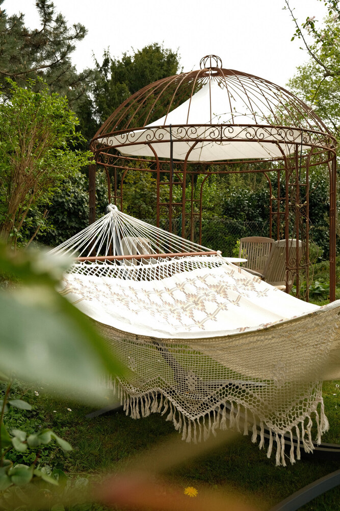 Nagy és masszív függőágy Brazíliából, keményfa merevítésekkel.