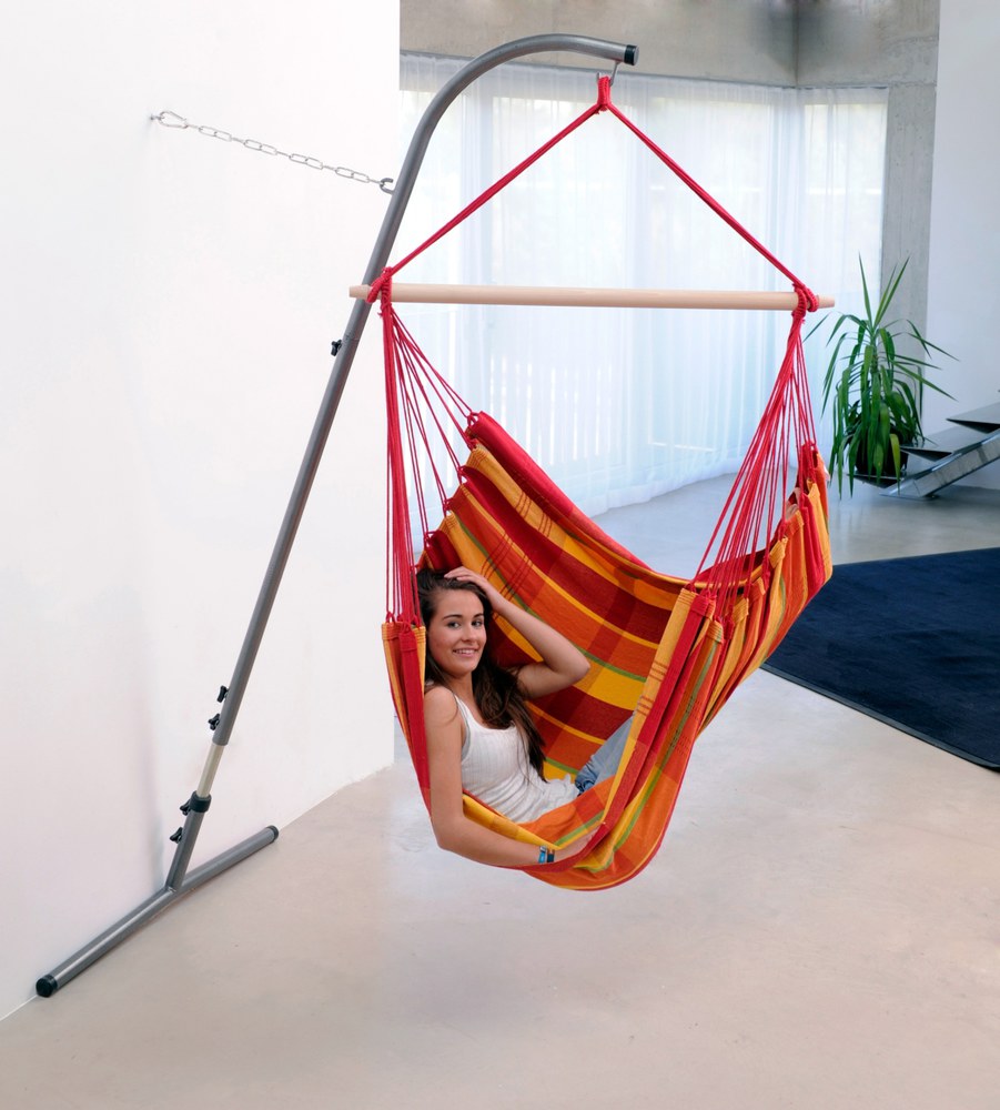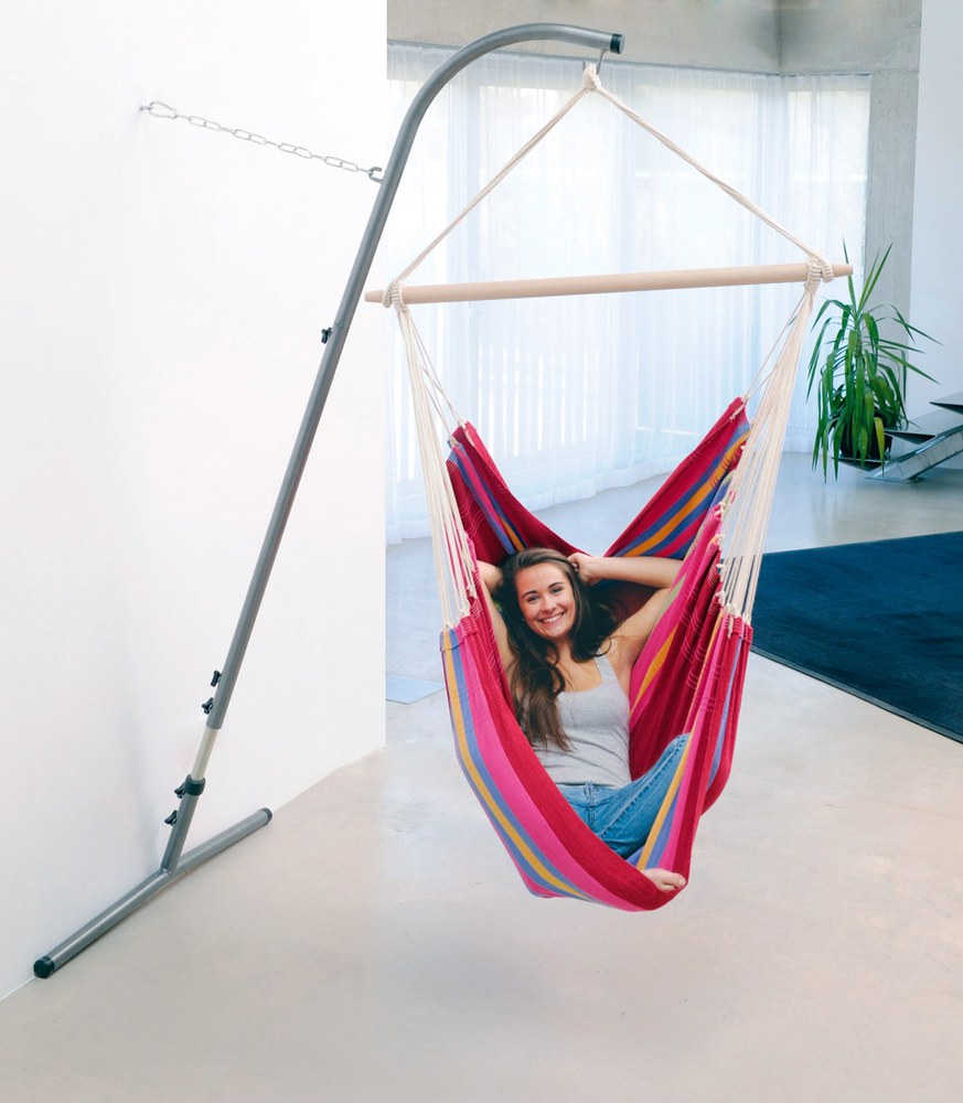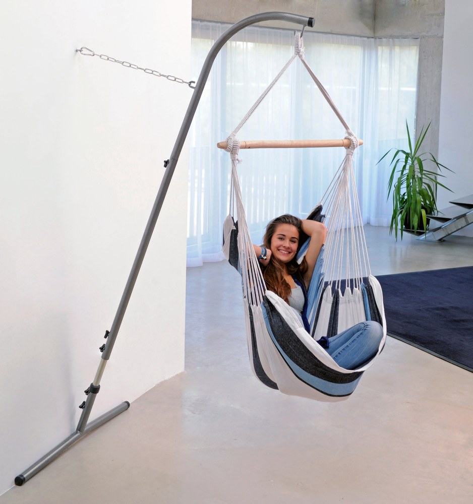 Ha a függőszék rögzítéséhez nem áll rendelkezésre teherbíró mennyezet, a Palmera állvány segíthet. Nagyon kis helyen elfér, egy ponton kell a falhoz rögzíteni és máris stabilan áll. Teleszkópos, állítható magasságú. A Palmera kiváló minőségű acélból készült, szerszám nélkül is könnyen összeszerelhető, minden függőszékhez ajánlott.