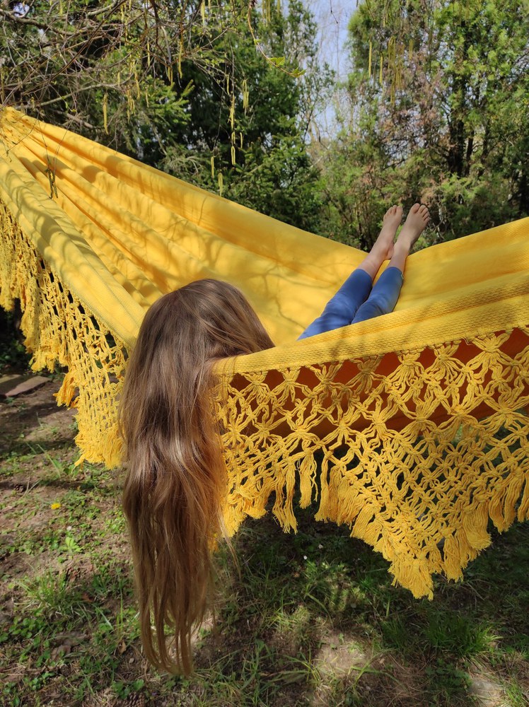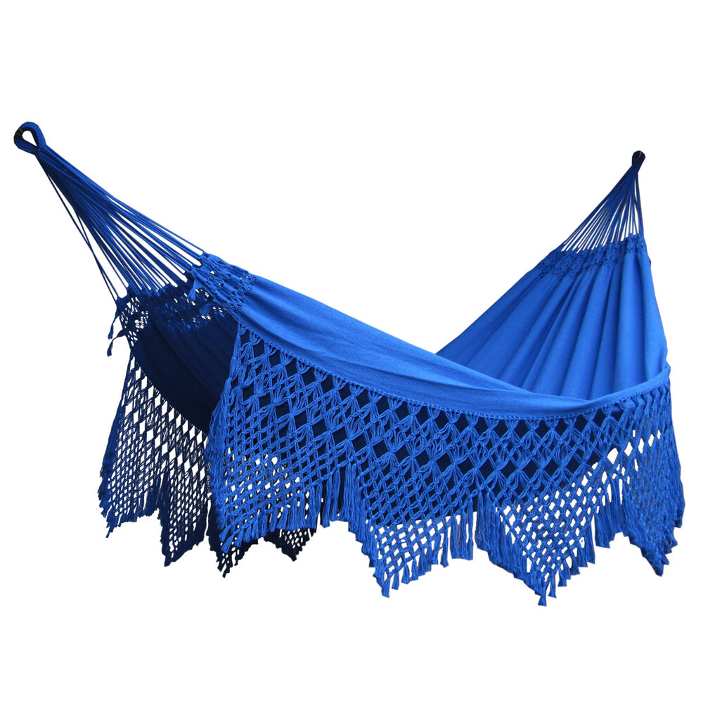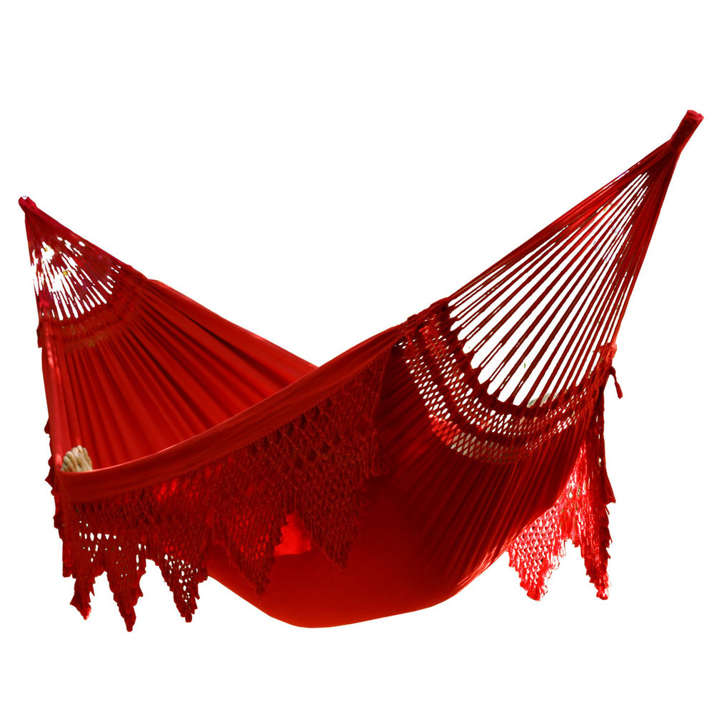 Luxus Brazíliából: hatalmas, igen kényelmes, extra erős és vastag szövésű. A felfüggesztőzsinórok minden más függőágyénál vastagabbak, az akasztó fül robosztus. Olyan nagy a füle, hogy nem is lehet közvetlenül karabinerre akasztani, előbb egy darab kötelet kell átfűzni rajta.