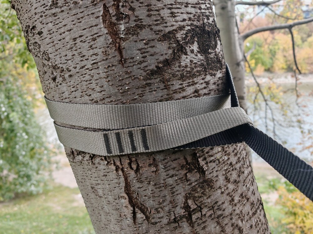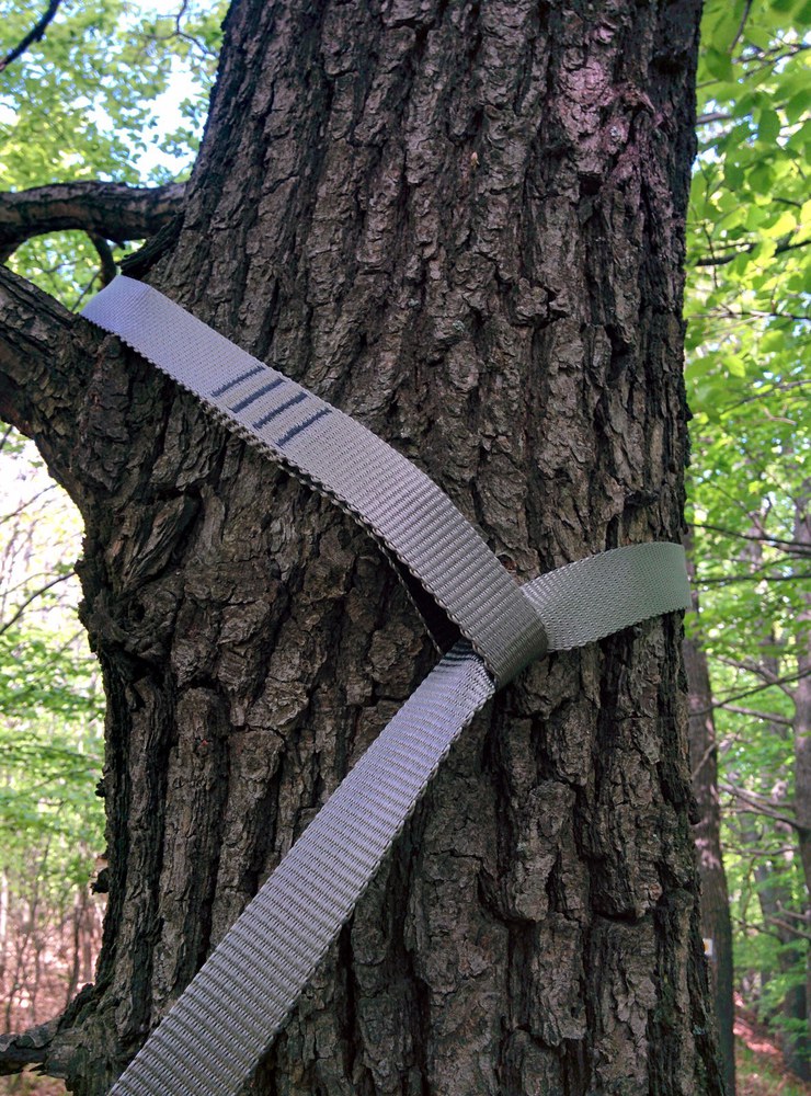 Ez a nagy teherbírású, tartós, UV-álló poliészter heveder megvédi a fa törzsét, miközben erősen tartja a függőágyat.