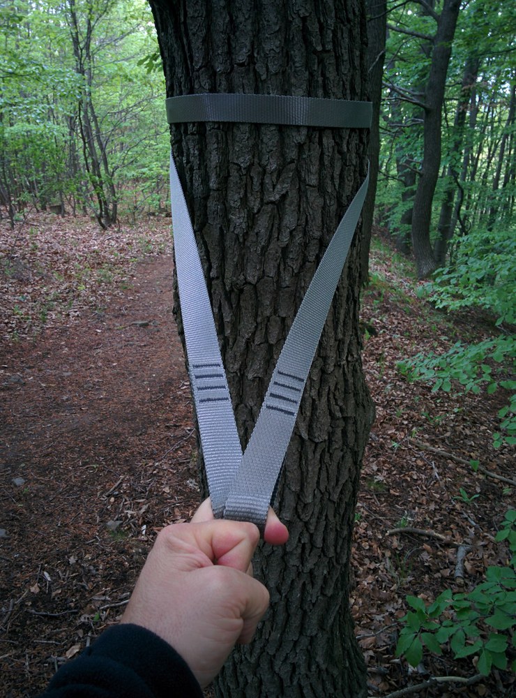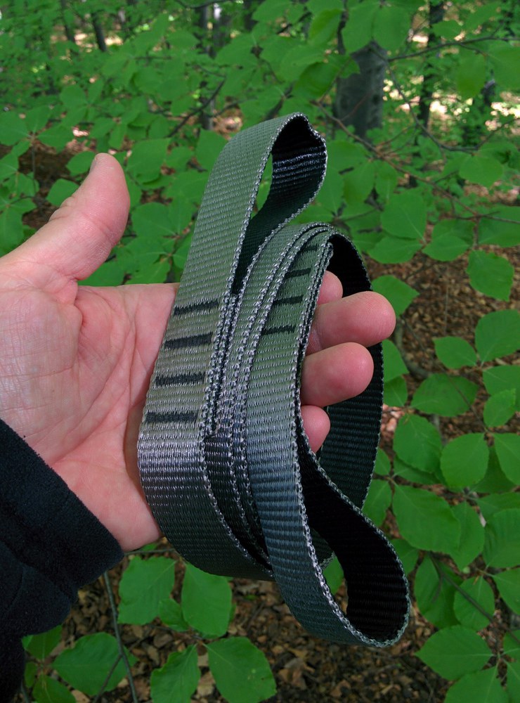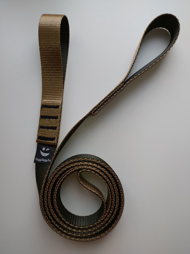 Ez a hevedert minden függőágyhoz ajánljuk. A fa törzsére ez a széles heveder kerül, saját magába visszafűzve használható. Meghosszabbítható teszés szerinti méretű kötéllel.