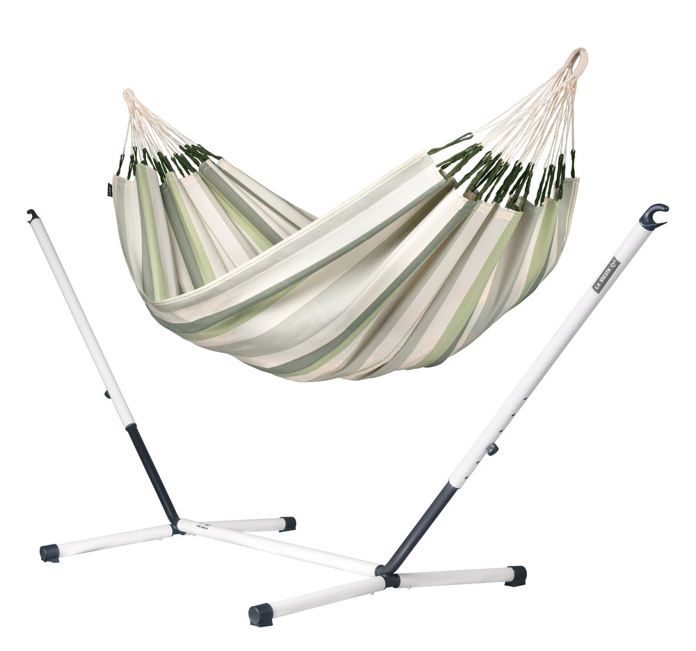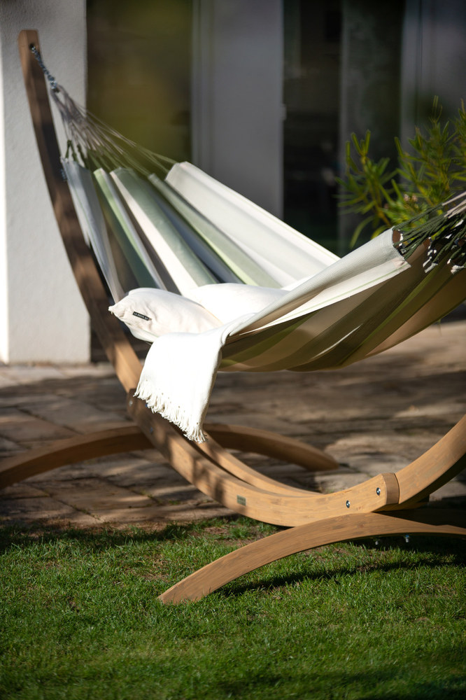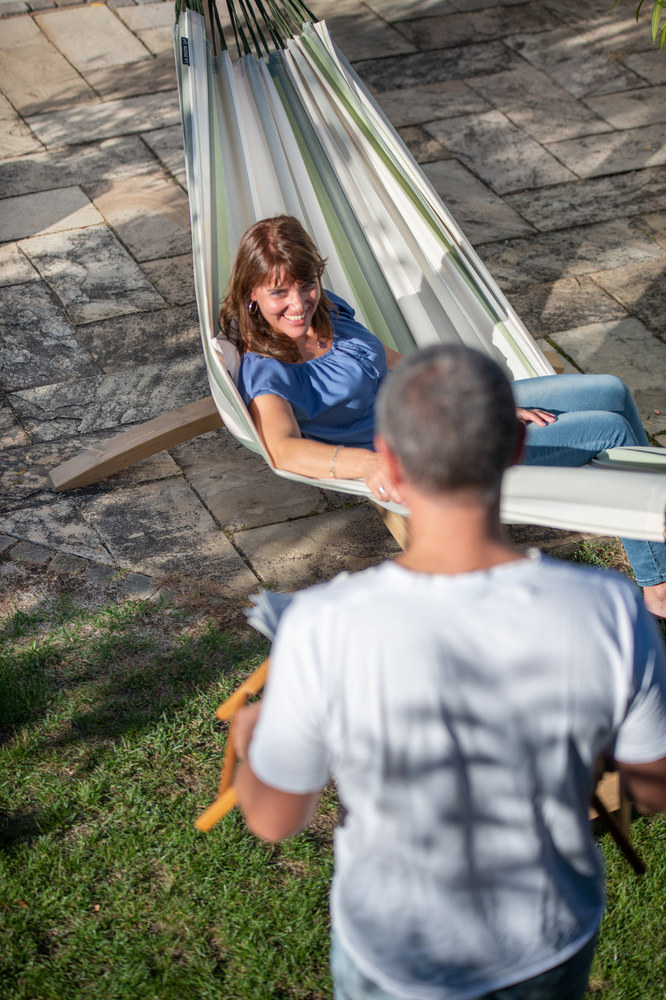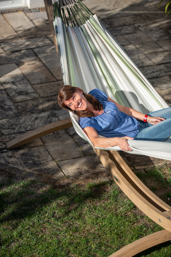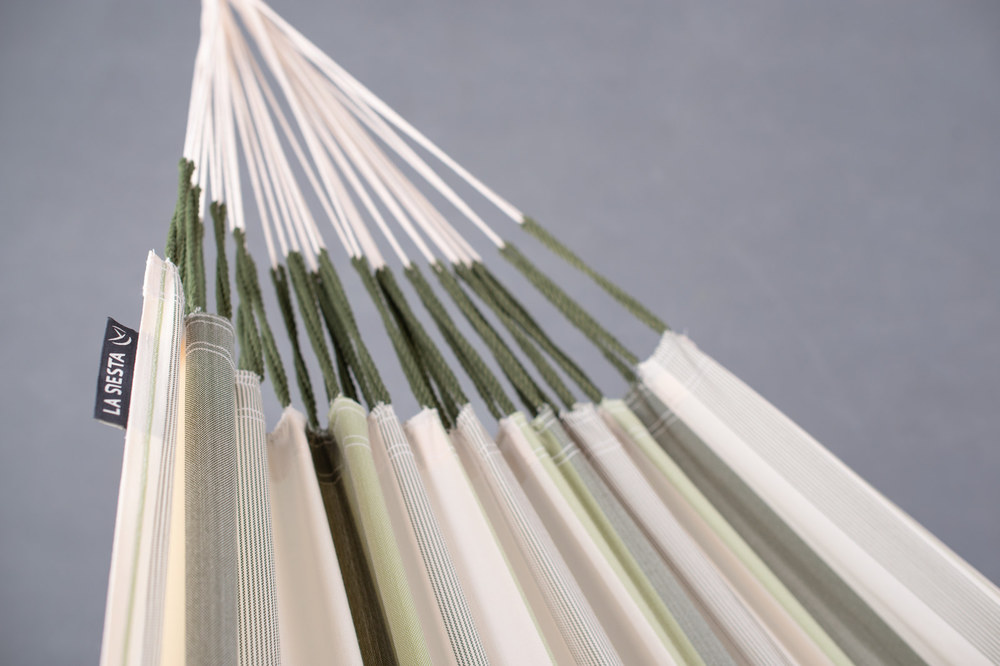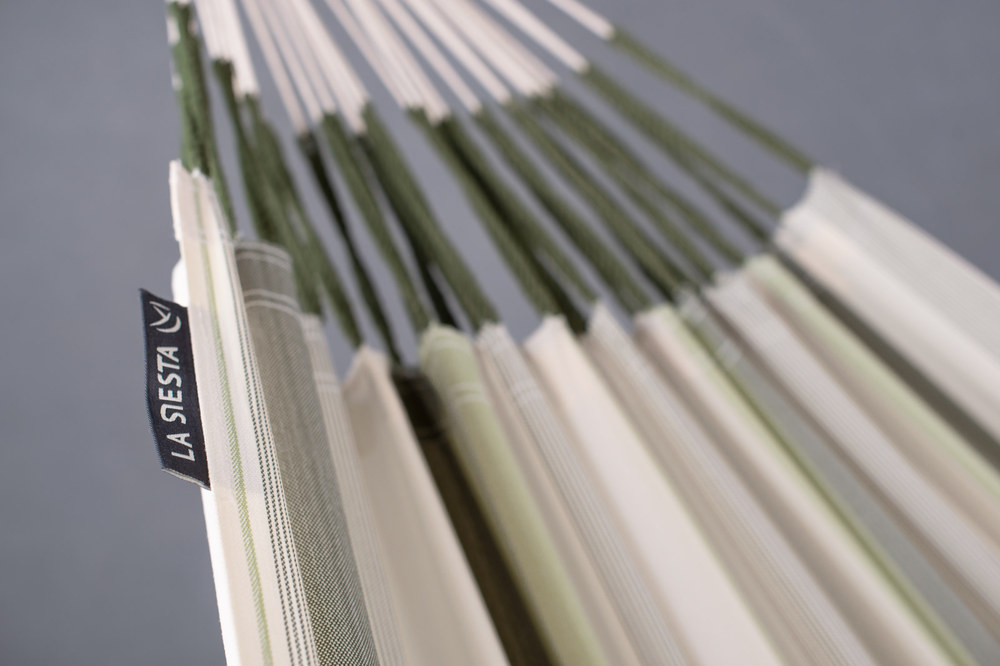 A La Siesta Brisa függőágy egész nyáron a szabadban hagyható! A Brisa ugyanis HamacTex® polipropilénől készül. Ez az alapanyag ellenáll az időjárás viszontagságainak, gyorsan szárad, és mégis meglepően hasonló a pamuthoz – mind küllemre, mind pedig tapintását tekintve. A függőágy szakadásbiztos széleit egy speciális technikával, a vetülékfonalak duplázásával alakítják ki – így tulajdonosa hosszú évekig élvezheti a La Siesta Brisa által nyújtott békés oázis érzését.