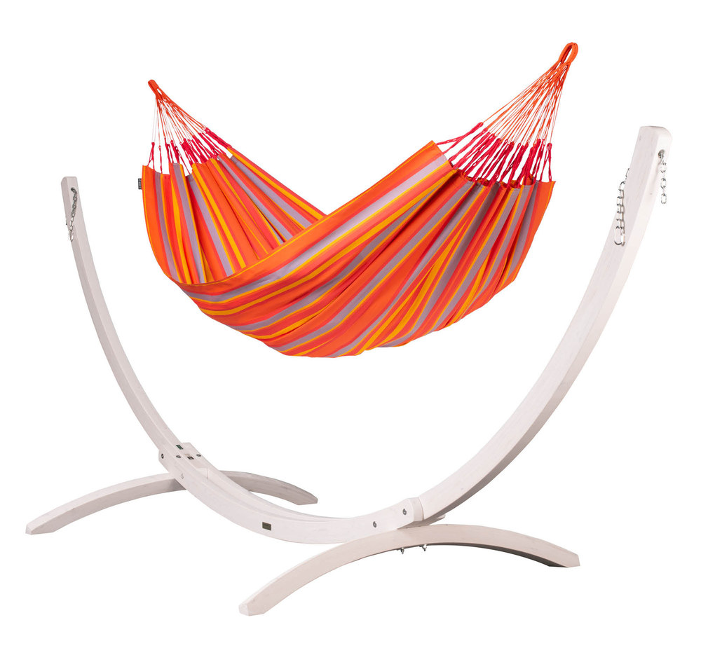 A La Siesta Brisa függőágy egész nyáron a szabadban hagyható! A Brisa ugyanis HamacTex® polipropilénől készül. Ez az alapanyag ellenáll az időjárás viszontagságainak, gyorsan szárad, és mégis meglepően hasonló a pamuthoz – mind küllemre, mind pedig tapintását tekintve. A függőágy szakadásbiztos széleit egy speciális technikával, a vetülékfonalak duplázásával alakítják ki – így tulajdonosa hosszú évekig élvezheti a La Siesta Brisa által nyújtott békés oázis érzését.