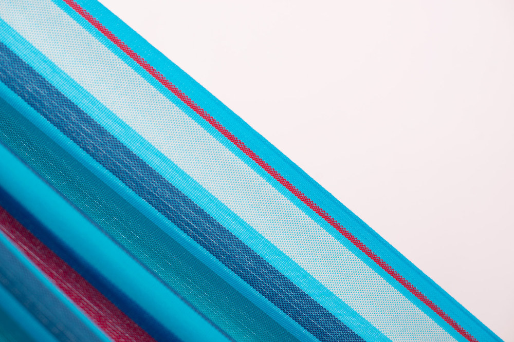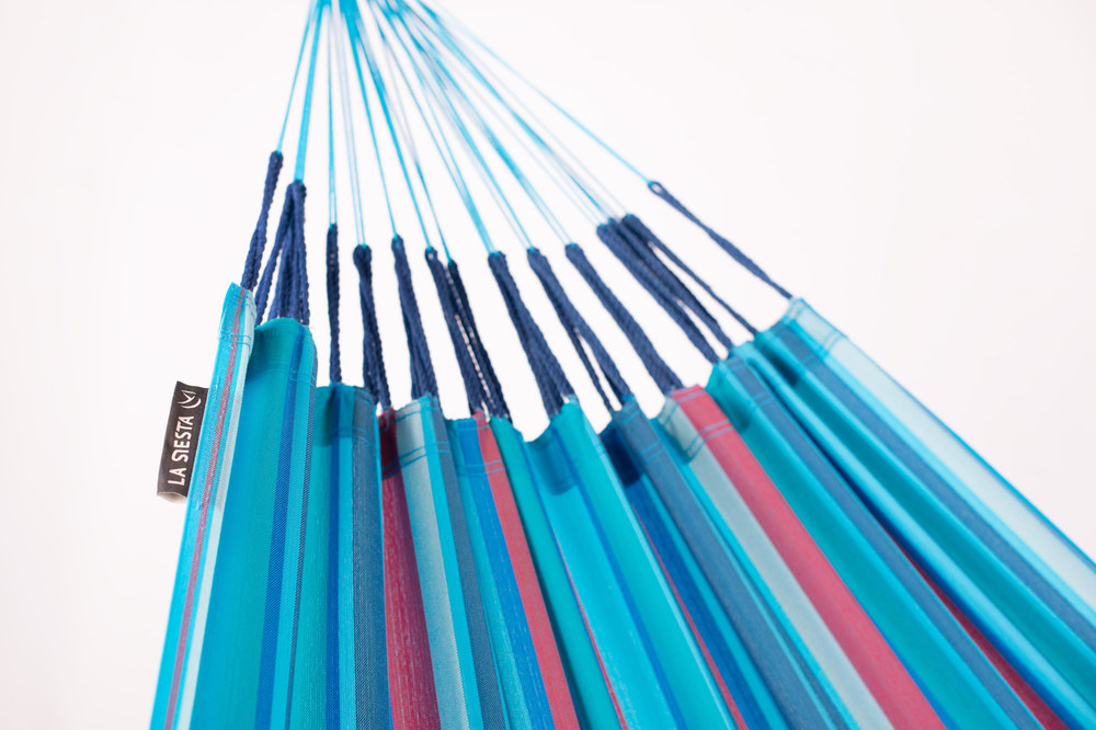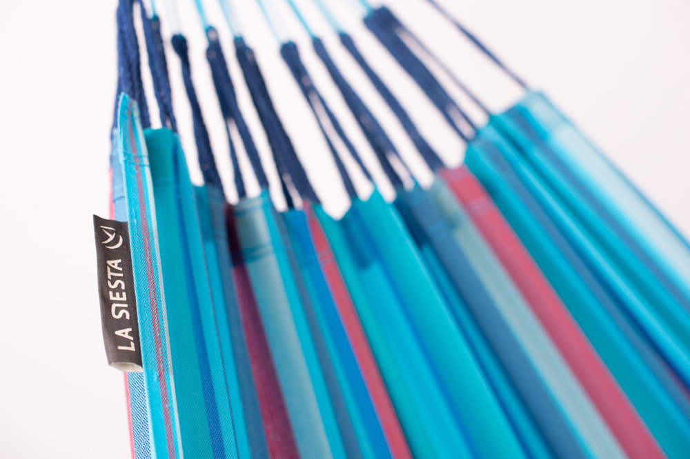 A La Siesta Brisa függőágy egész nyáron a szabadban hagyható! A Brisa ugyanis HamacTex® polipropilénől készül. Ez az alapanyag ellenáll az időjárás viszontagságainak, gyorsan szárad, és mégis meglepően hasonló a pamuthoz – mind küllemre, mind pedig tapintását tekintve. A függőágy szakadásbiztos széleit egy speciális technikával, a vetülékfonalak duplázásával alakítják ki – így tulajdonosa hosszú évekig élvezheti a La Siesta Brisa által nyújtott békés oázis érzését.