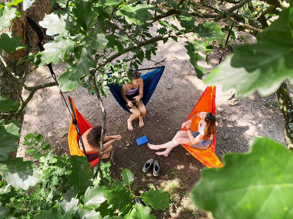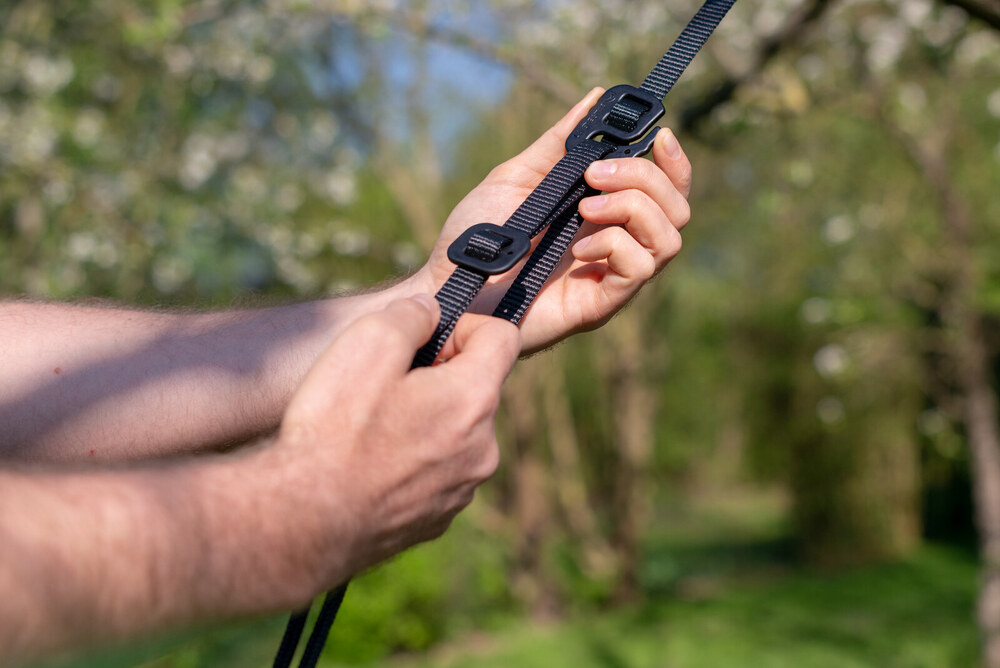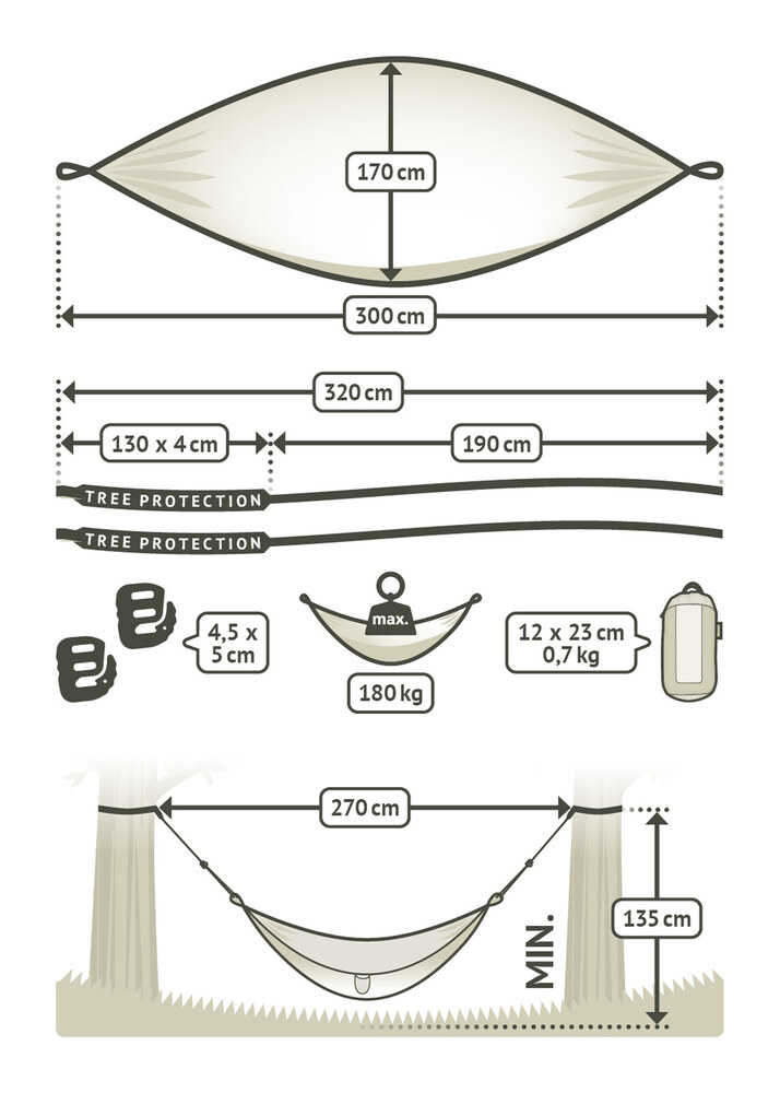 A függőágy oldalára rögzített praktikus tárolózsák nemcsak ideális hordozó, de használat közben apró tárgyakat is beletehetünk, például napszeüveget, kisebb könyvet, édességet, telefont, így kéznél lesznek.