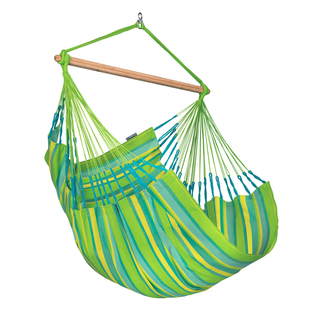 A dupla vetülékszálak biztosítják, hogy a függőszék szakadásbiztos legyen, és hosszan élvezhesse használója a Domingo adta kényelmet. A teherelosztó farúd kiváló minőségű keményfából készült, mely az Erdőgondnoksági Tanács (FSC®-Forest Stewardship Council®) által ellenőrzött erdőkből származik. A La Siesta függőszékek különleges jellemzője az integrált biztonsági forgó, amely a függőszék forgását könnyűvé és ezáltal hosszan használhatóvá teszi. Ha tökéletes pihenőhelyet szeretne kertjébe, válassza a Domingo függőszéket.