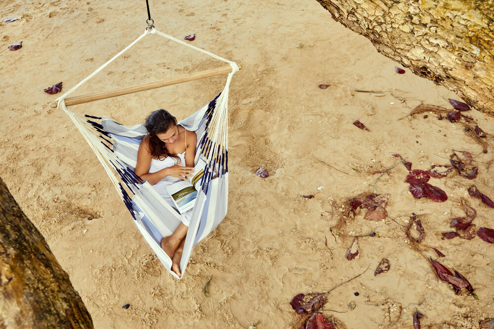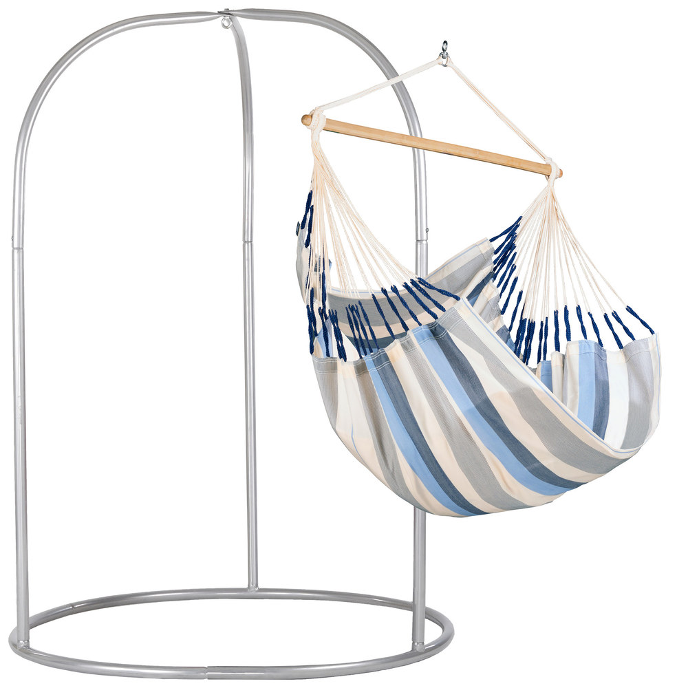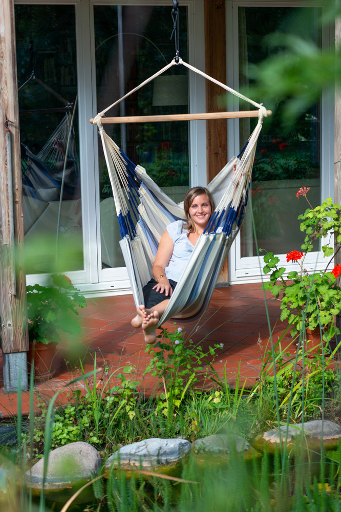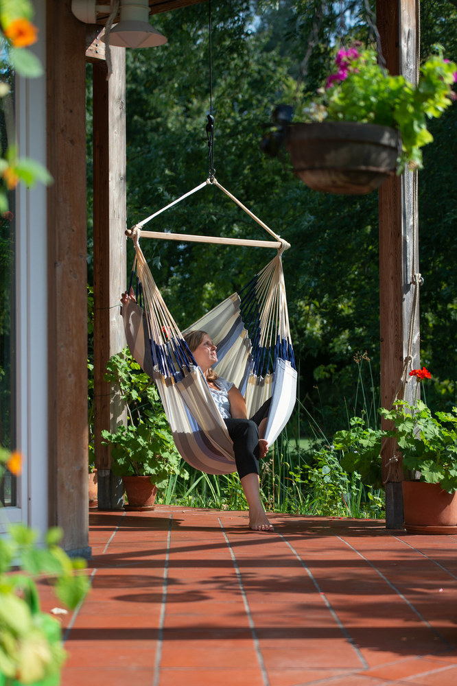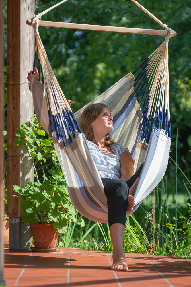 A Domingo függőfotelt egész nyáron a szabadban tarthatja! Anyaga HamacTex® (polipropilén), mely ellenáll az időjárás viszontagságainak, és nagyon gyorsan szárad. A HamacTex® mindazonáltal igen könnyen összetéveszthető a pamuttal, mivel küllemre, tapintásra is hasonlít a természetes anyaghoz. A Domingo Kolumbiában készül, ahol a függőszékek és –ágyak igazi nemzeti kincsnek számítanak, és évszázadok óta részét képezik a kulturális hagyománynak.