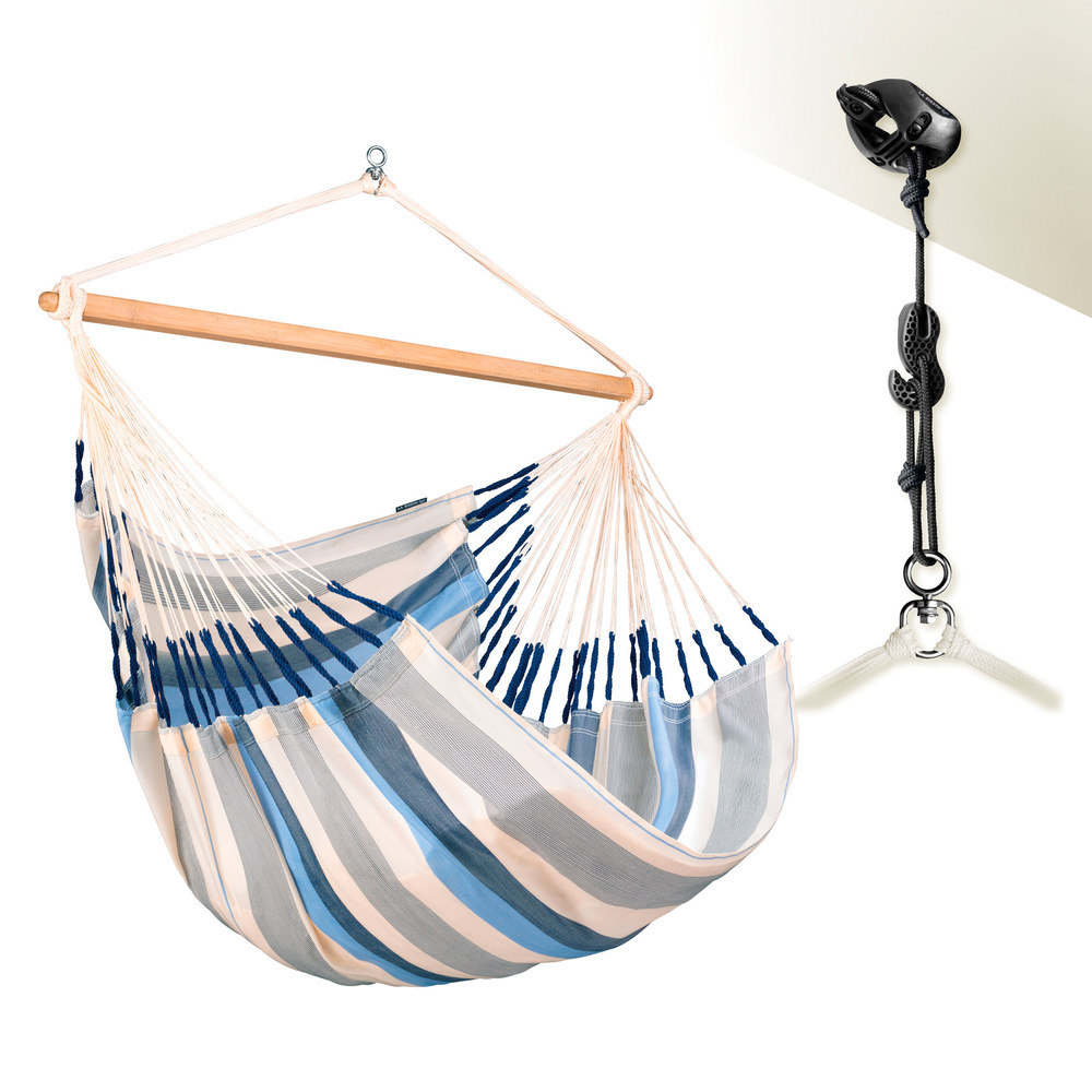 A dupla vetülékszálak biztosítják, hogy a függőszék szakadásbiztos legyen, és hosszan élvezhesse használója a Domingo adta kényelmet. A teherelosztó farúd kiváló minőségű keményfából készült, mely az Erdőgondnoksági Tanács (FSC®-Forest Stewardship Council®) által ellenőrzött erdőkből származik. A La Siesta függőszékek különleges jellemzője az integrált biztonsági forgó, amely a függőszék forgását könnyűvé és ezáltal hosszan használhatóvá teszi. Ha tökéletes pihenőhelyet szeretne kertjébe, válassza a Domingo függőszéket.