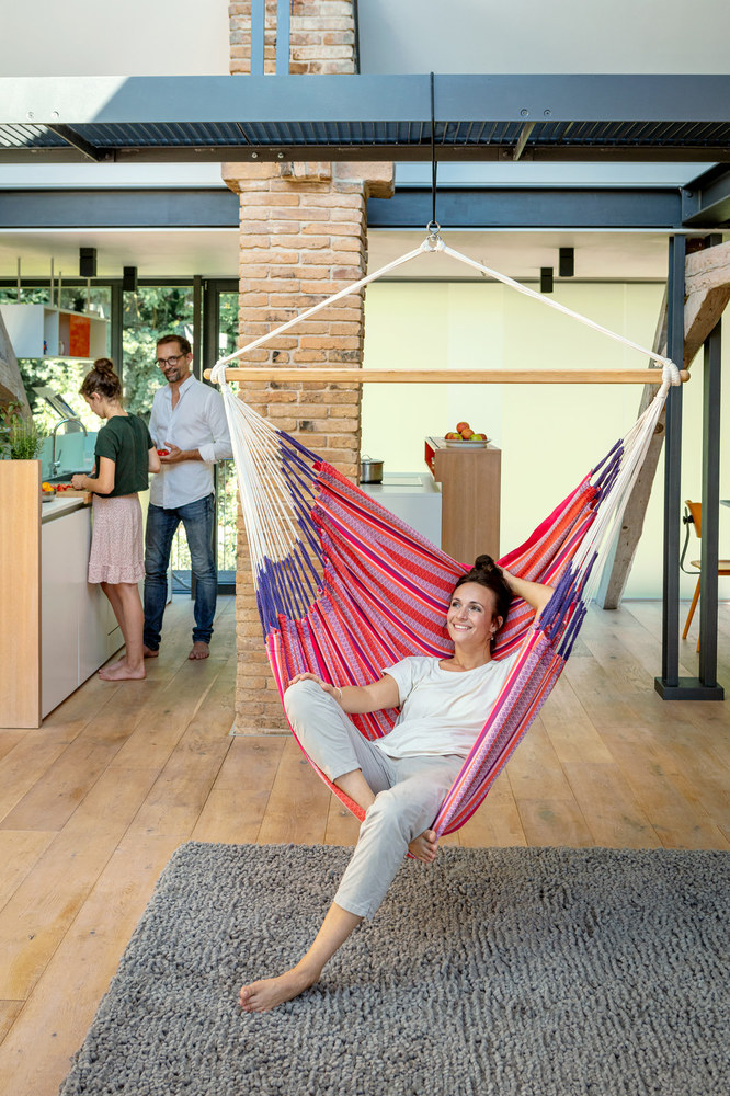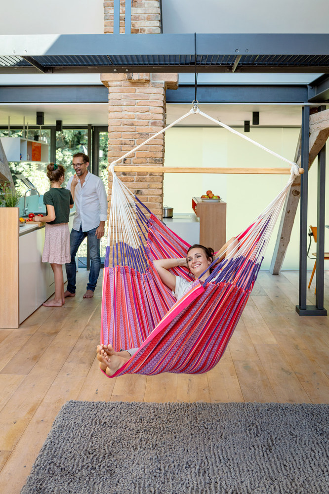 A Habana Flamingo függőfotel fantasztikusan kényelmes és tágas, organikus pamut anyagból készült - a súlytalanság érzetét biztosítja.