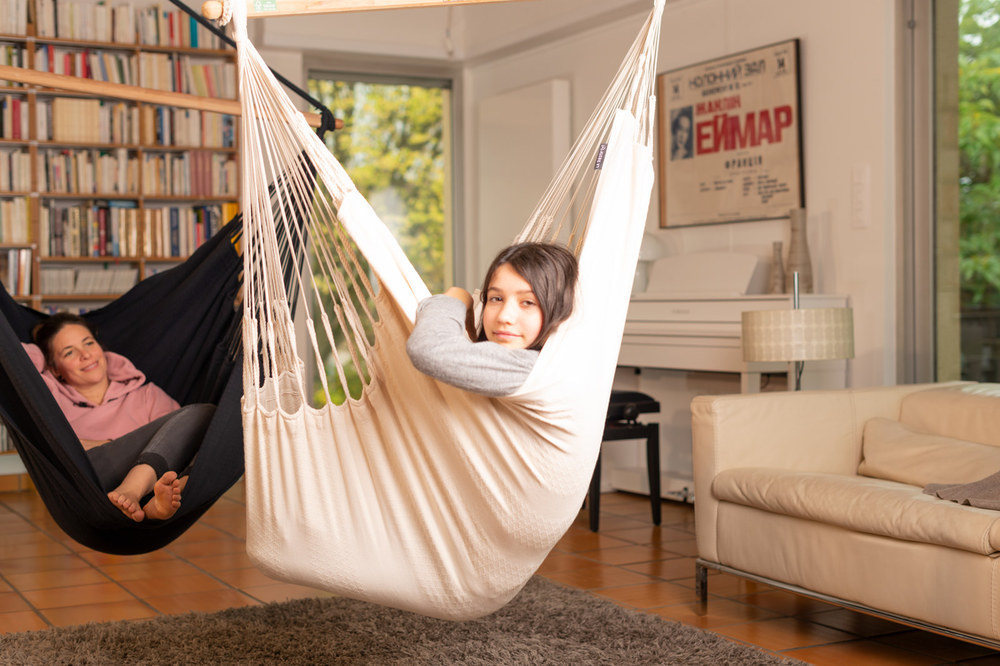 A Habana Latte függőfotel fantasztikusan kényelmes és tágas, organikus pamut anyagból készült - a súlytalanság érzetét biztosítja.