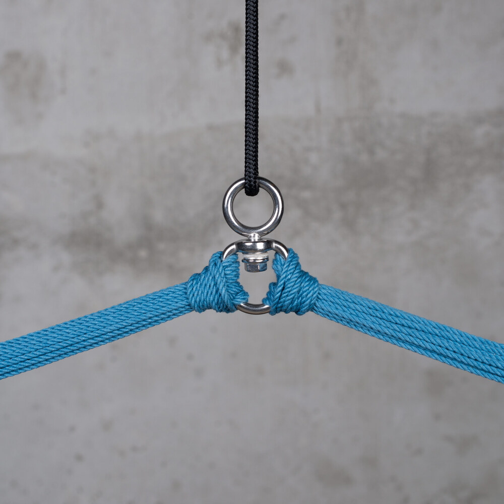 A nagyszámú zsinórzat a kolumbiai függőszékek általános jellemzője. A súlyeloszlás használat közben optimális a függőfotel a zsinóroknak köszönhetően maximális kényelmet nyújt, miközben igen strapabíró. A textil megerősített szélei nagy szakítószilárdságot biztosítanak a függőfotelnek. A beépített biztonsági forgószem biztonságos 360 fokos elforgást tesz lehetővé. A távtartó rúd csúcsminőségű bambuszból készült, amely nem csak vonzó küllemű, de rendkívül erős és vízálló. Emellett az sem elhanyagolható, hogy a függőágy fa alkotóelemei felelős erdőgazdálkodásból származnak(FSC®).