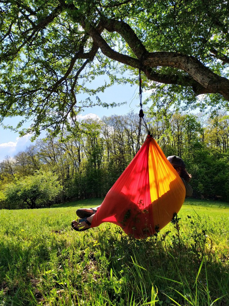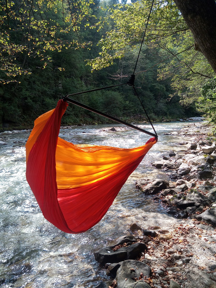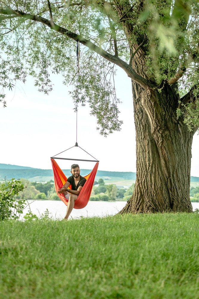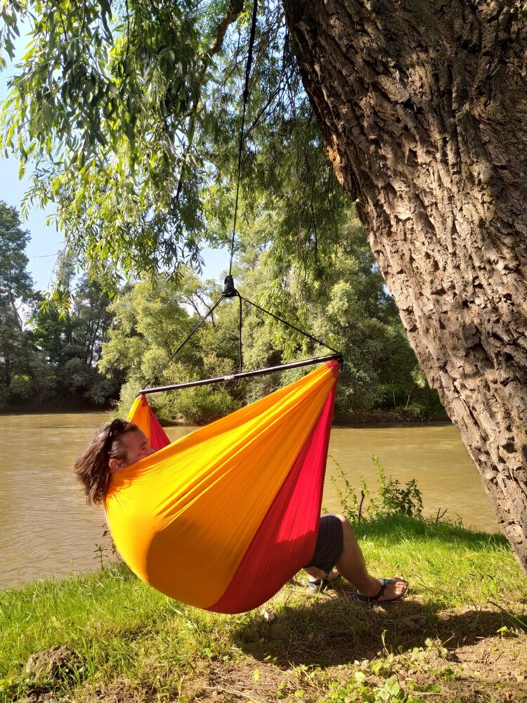 Így mindenhová magaddal viheted, mint egy túrafüggőágyat, viszont elég hozzá egy fa :)