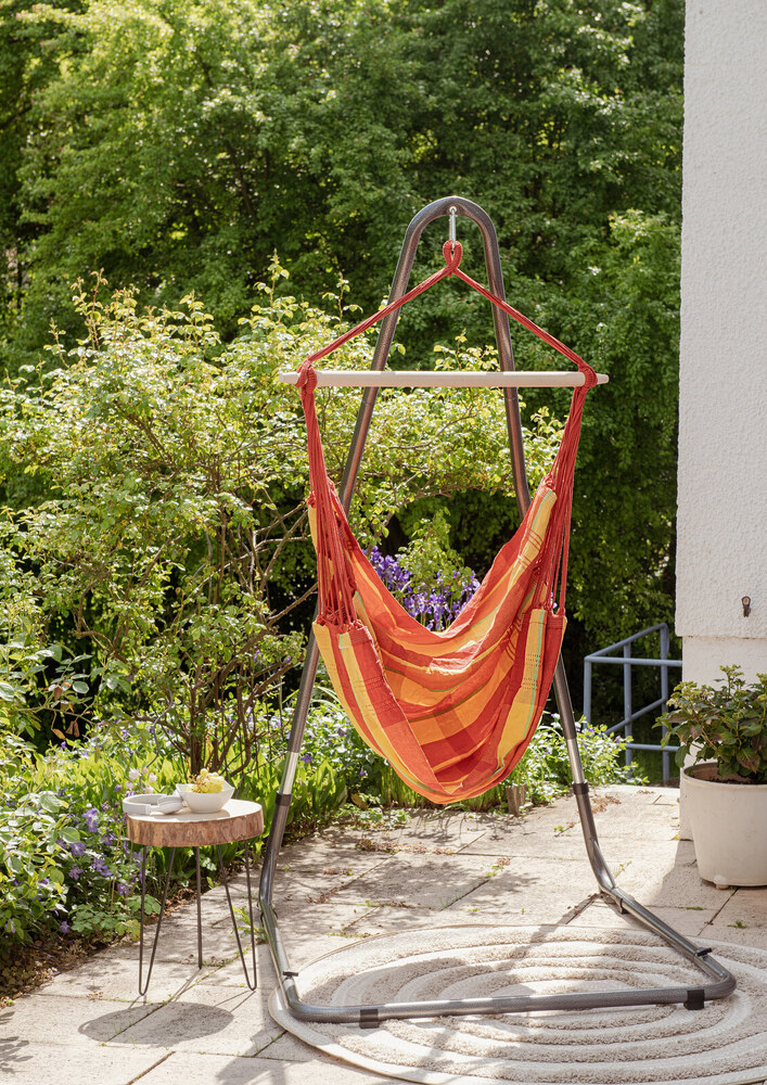 Ha a függőszék rögzítéséhez nem áll rendelkezésre sem fal, sem mennyezet, de egy árva faág sem, bátran válassza a stabil és elegáns Luna függőszék állványt. Így mindig kéznél lesz egy kényelmes kuckó, ahol az ember ringatózhat, álmodozhat, pihenhet. A Luna kiváló minőségű acélból készült, szerszám nélkül is könnyen összeszerelhető, minden függőszékhez ajánlott.