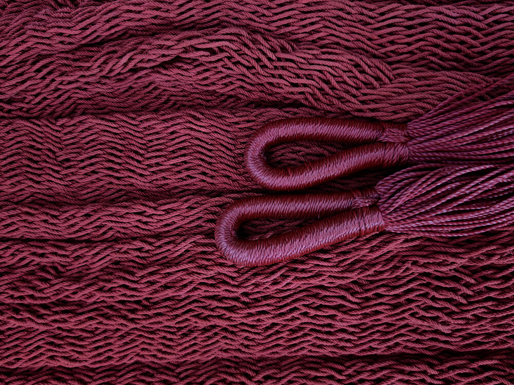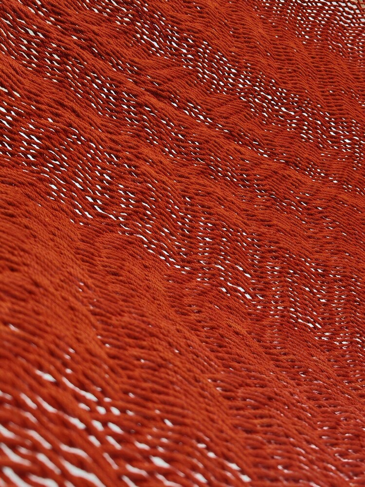 A hagyományos 'sprang' szövési technikának köszönhetően a függőágy tökéletesen felveszi a test alakját. A párhuzamos, de egymásba hurkolt szálak olyan felületet alkotnak, amely hosszanti irányban fix, keresztben rugalmas. A legnagyobb hőségben is szellős, kellemesen hűsít a szálak között átjáró levegő.