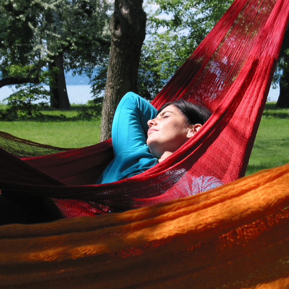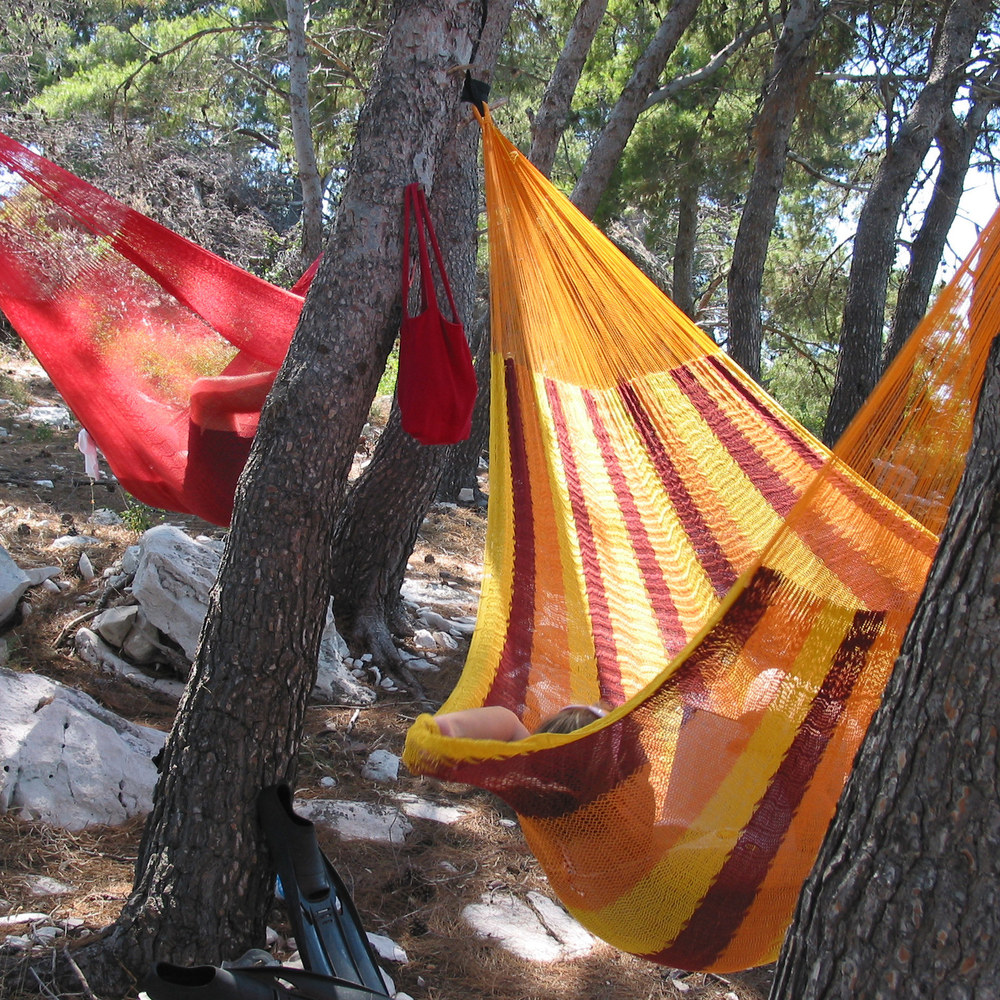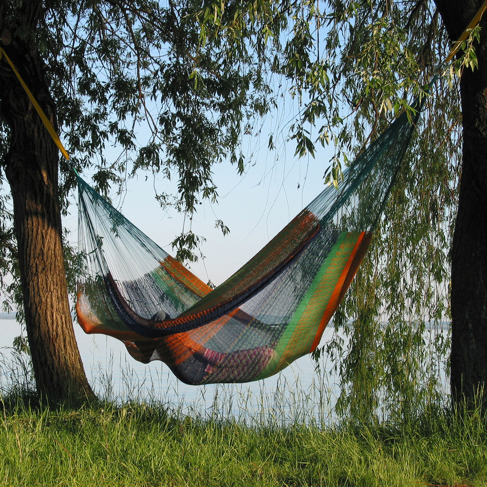A hagyományos 'sprang' szövési technikának köszönhetően a függőágy tökéletesen felveszi a test alakját. A párhuzamos, de egymásba hurkolt szálak olyan felületet alkotnak, amely hosszanti irányban fix, keresztben rugalmas. A legnagyobb hőségben is szellős, kellemesen hűsít a szálak között átjáró levegő.