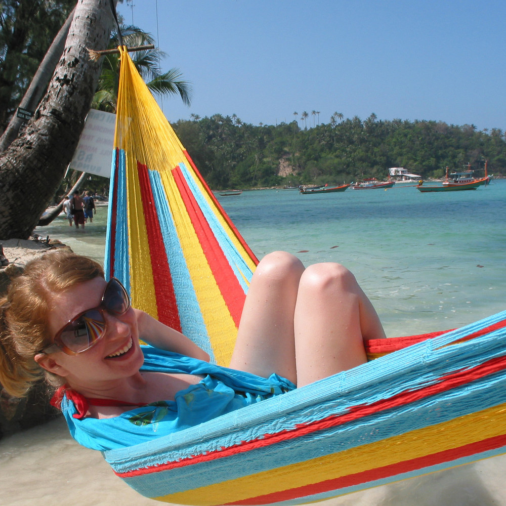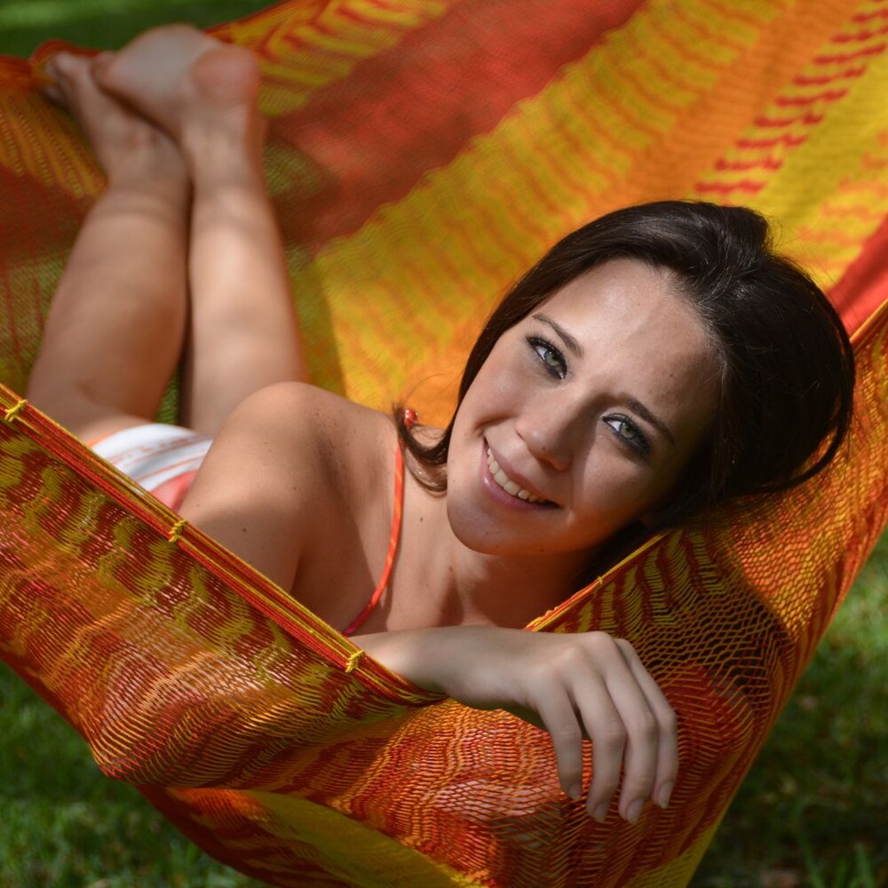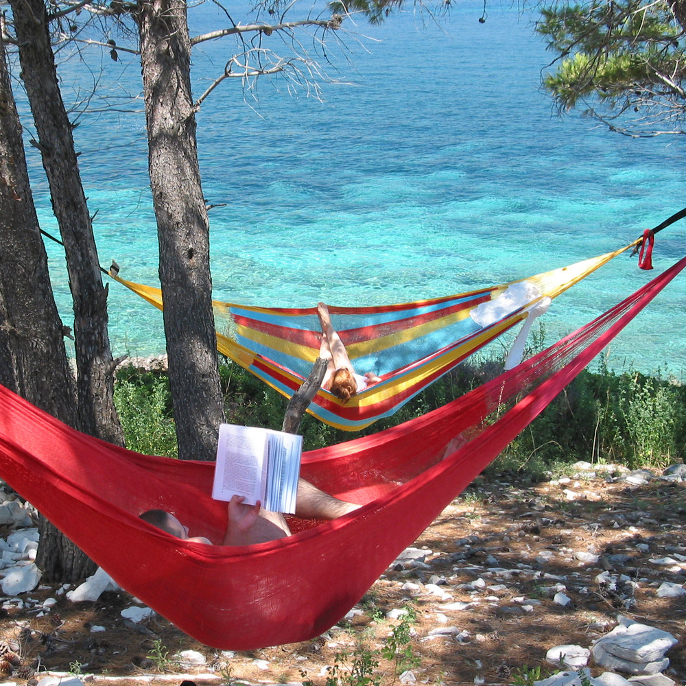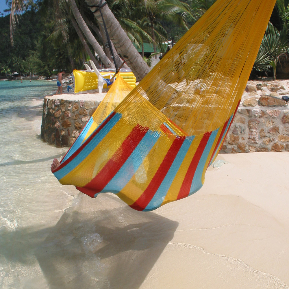 A hagyományos 'sprang' szövési technikának köszönhetően a függőágy tökéletesen felveszi a test alakját. A párhuzamos, de egymásba hurkolt szálak olyan felületet alkotnak, amely hosszanti irányban fix, keresztben rugalmas. A legnagyobb hőségben is szellős, kellemesen hűsít a szálak között átjáró levegő.