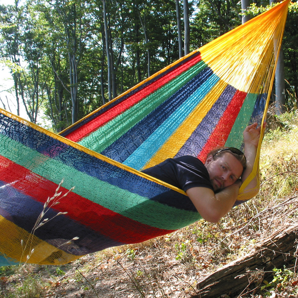 A finom tapintású maya függőágyak Mexikó eldugott falvaiban készülnek, kézi munkával. Egy Maya Titan függőágy fekvőfelülete kb. 2400 méter pamut fonalból készült, hurkolt háló. A két végén az akasztó rész 800 méter szintetikus szálból áll, a szálvastagság 1 mm.