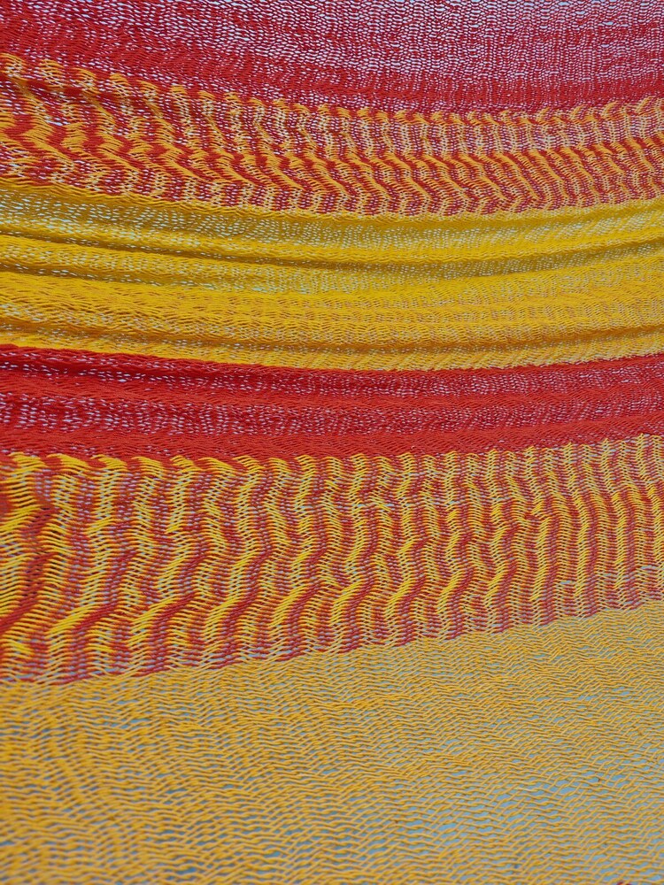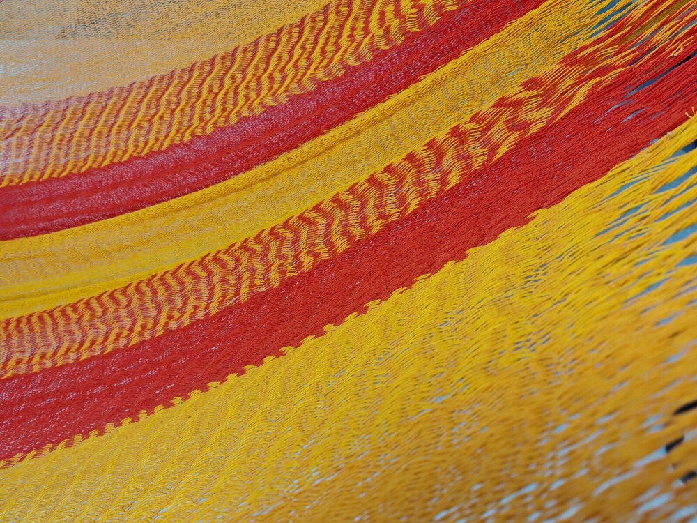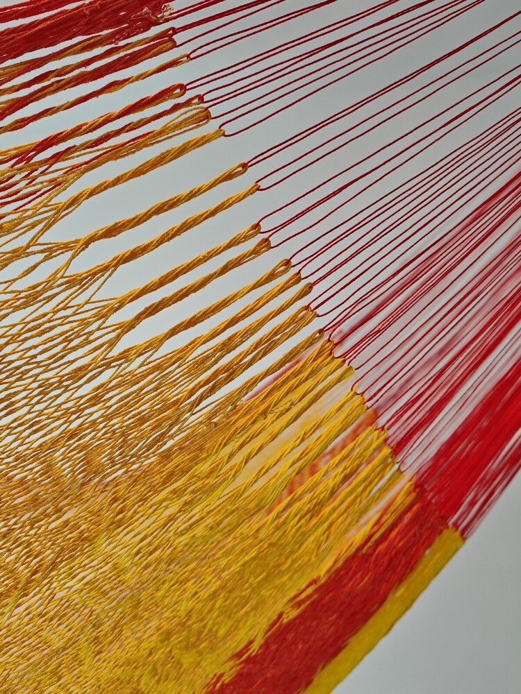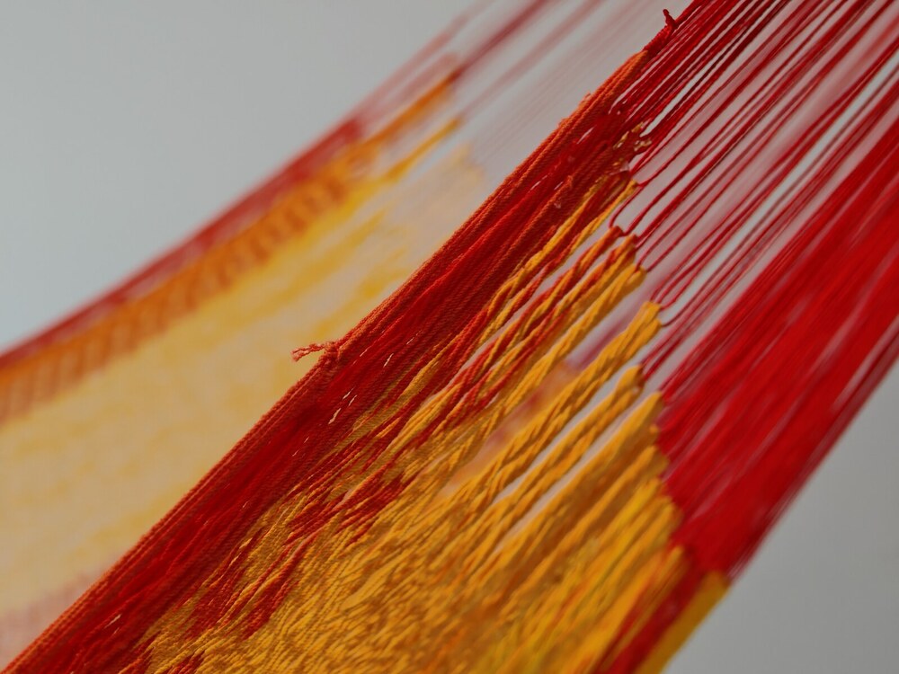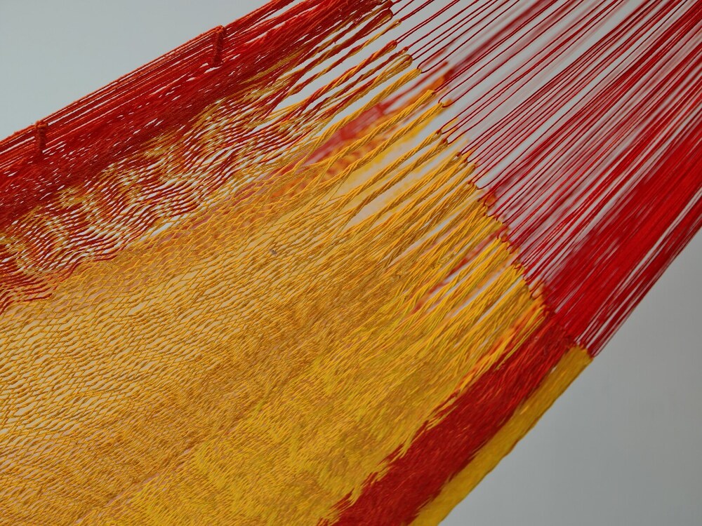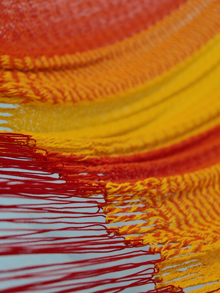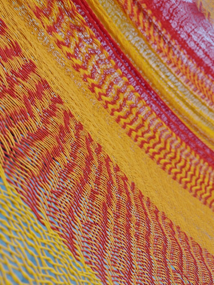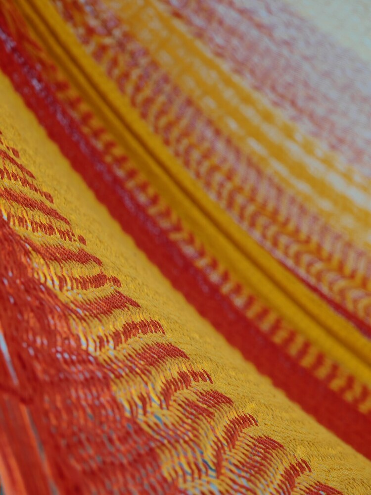 A hagyományos 'sprang' szövési technikának köszönhetően a függőágy tökéletesen felveszi a test alakját. A párhuzamos, de egymásba hurkolt szálak olyan felületet alkotnak, amely hosszanti irányban fix, keresztben rugalmas. A legnagyobb hőségben is szellős, kellemesen hűsít a szálak között átjáró levegő.