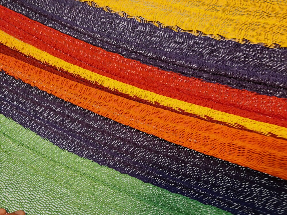 A hagyományos 'sprang' szövési technikának köszönhetően a függőágy tökéletesen felveszi a test alakját. A párhuzamos, de egymásba hurkolt szálak olyan felületet alkotnak, amely hosszanti irányban fix, keresztben rugalmas. A legnagyobb hőségben is szellős, kellemesen hűsít a szálak között átjáró levegő.