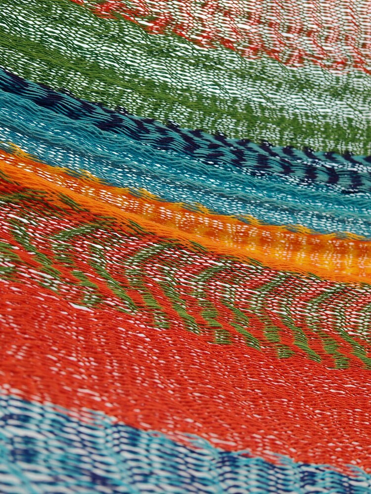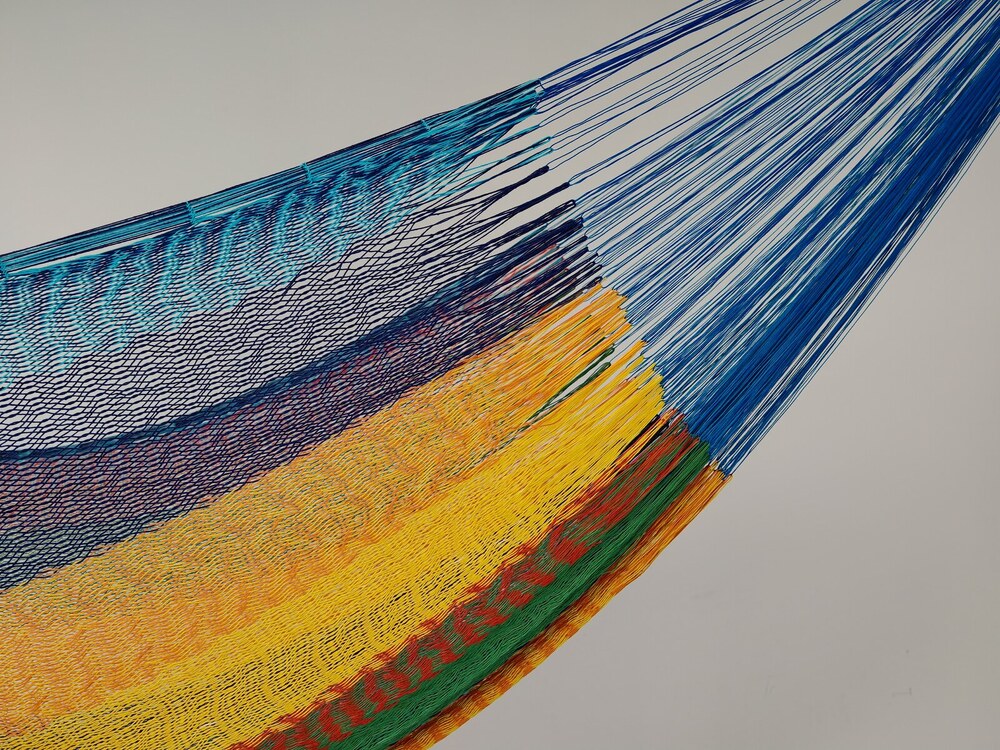 A hagyományos 'sprang' szövési technikának köszönhetően a függőágy tökéletesen felveszi a test alakját. A párhuzamos, de egymásba hurkolt szálak olyan felületet alkotnak, amely hosszanti irányban fix, keresztben rugalmas. A legnagyobb hőségben is szellős, kellemesen hűsít a szálak között átjáró levegő.