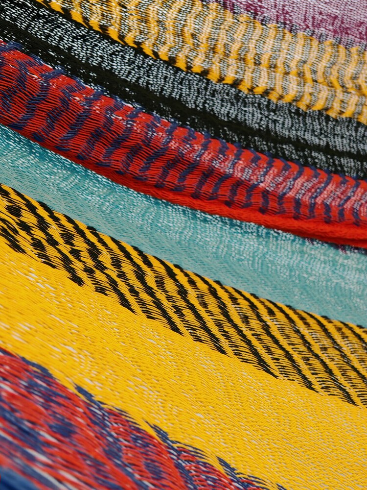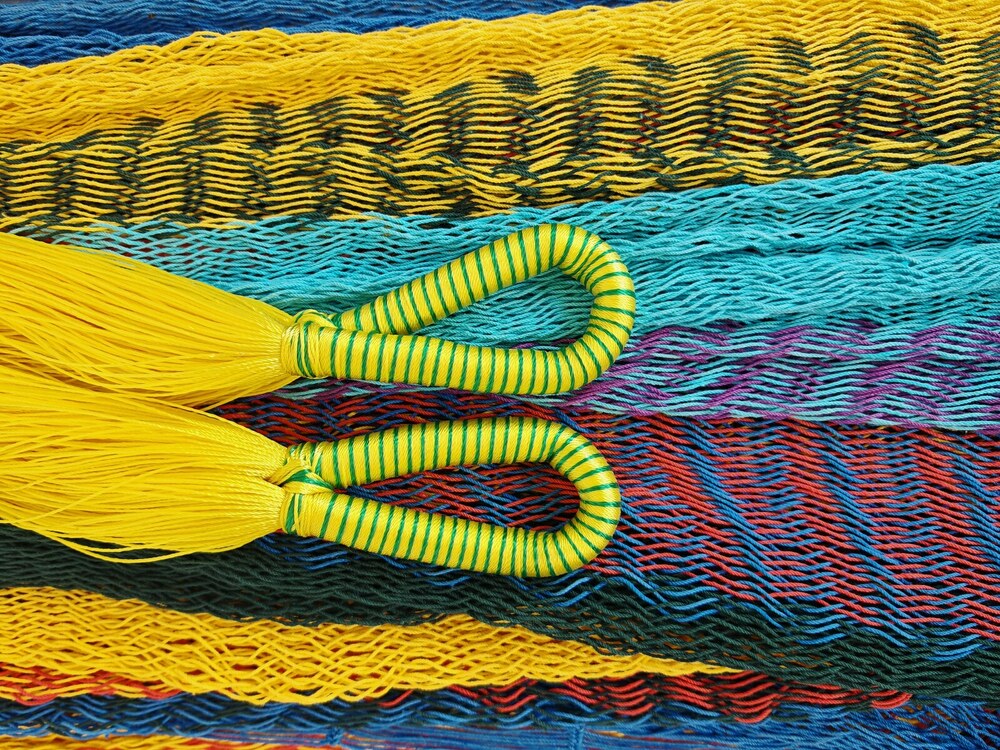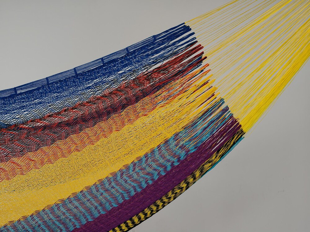 A hagyományos 'sprang' szövési technikának köszönhetően a függőágy tökéletesen felveszi a test alakját. A párhuzamos, de egymásba hurkolt szálak olyan felületet alkotnak, amely hosszanti irányban fix, keresztben rugalmas. A legnagyobb hőségben is szellős, kellemesen hűsít a szálak között átjáró levegő.