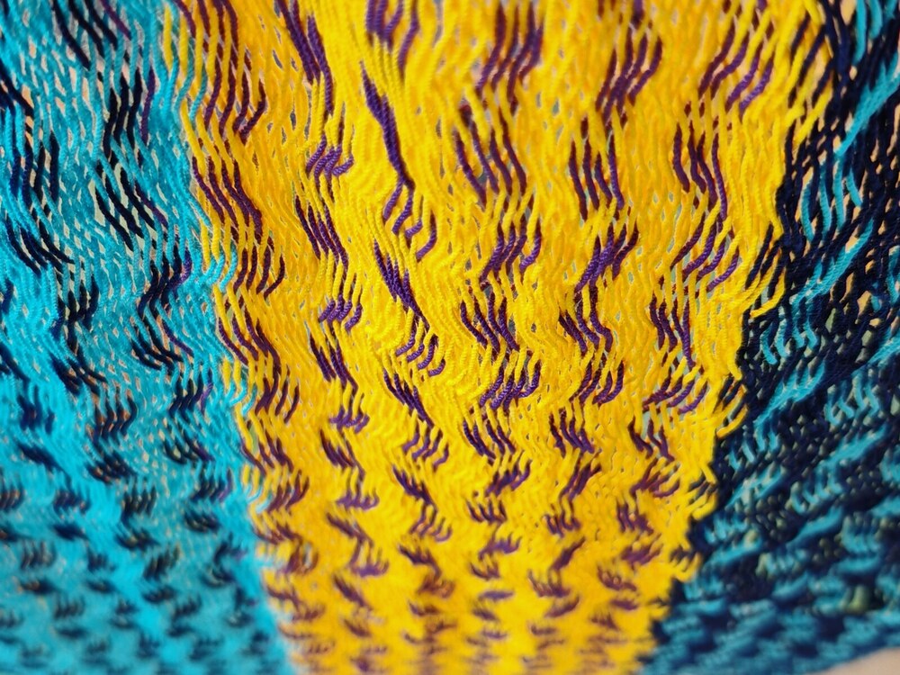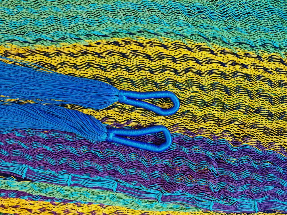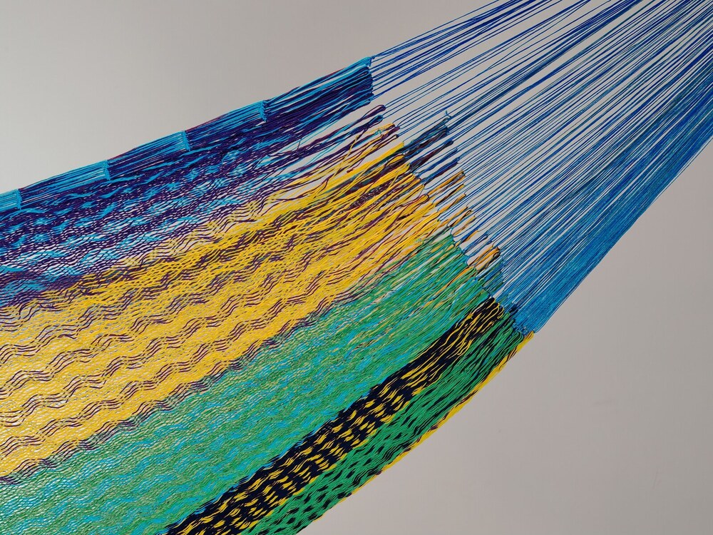 A hagyományos 'sprang' szövési technikának köszönhetően a függőágy tökéletesen felveszi a test alakját. A párhuzamos, de egymásba hurkolt szálak olyan felületet alkotnak, amely hosszanti irányban fix, keresztben rugalmas. A legnagyobb hőségben is szellős, kellemesen hűsít a szálak között átjáró levegő.