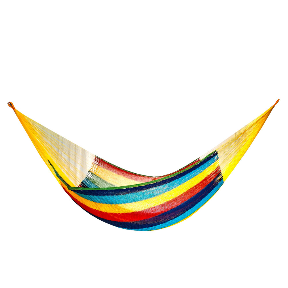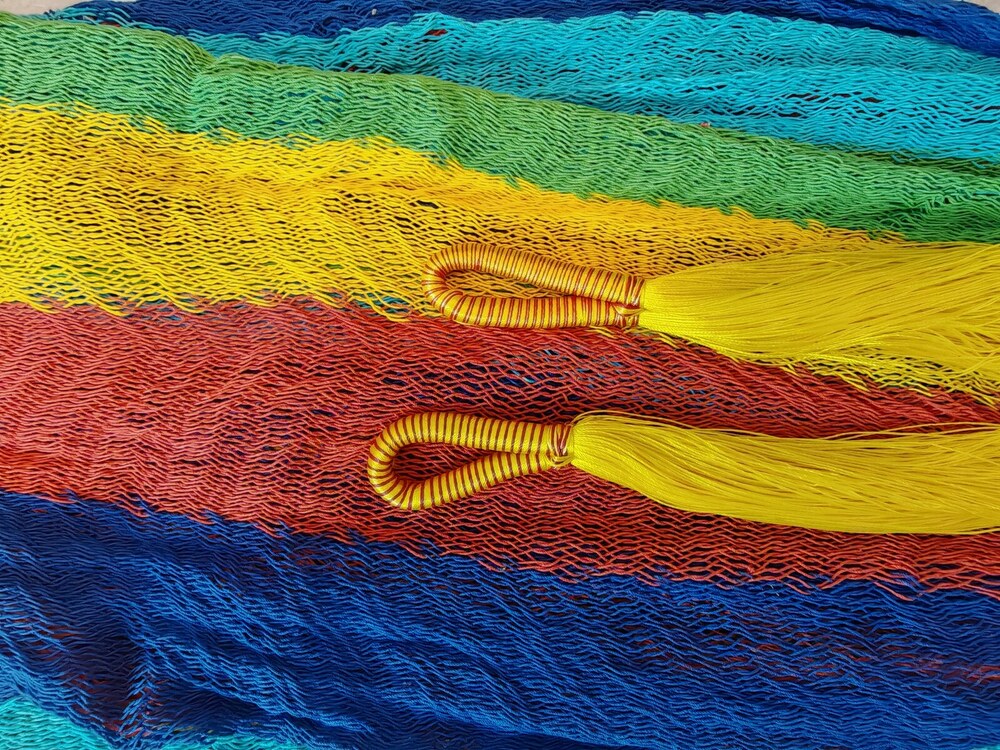 A finom tapintású maya függőágyak Mexikó eldugott falvaiban készülnek, kézi munkával. Egy Maya Titan függőágy fekvőfelülete kb. 2400 méter pamut fonalból készült, hurkolt háló. A két végén az akasztó rész 800 méter szintetikus szálból áll, a szálvastagság 1 mm.