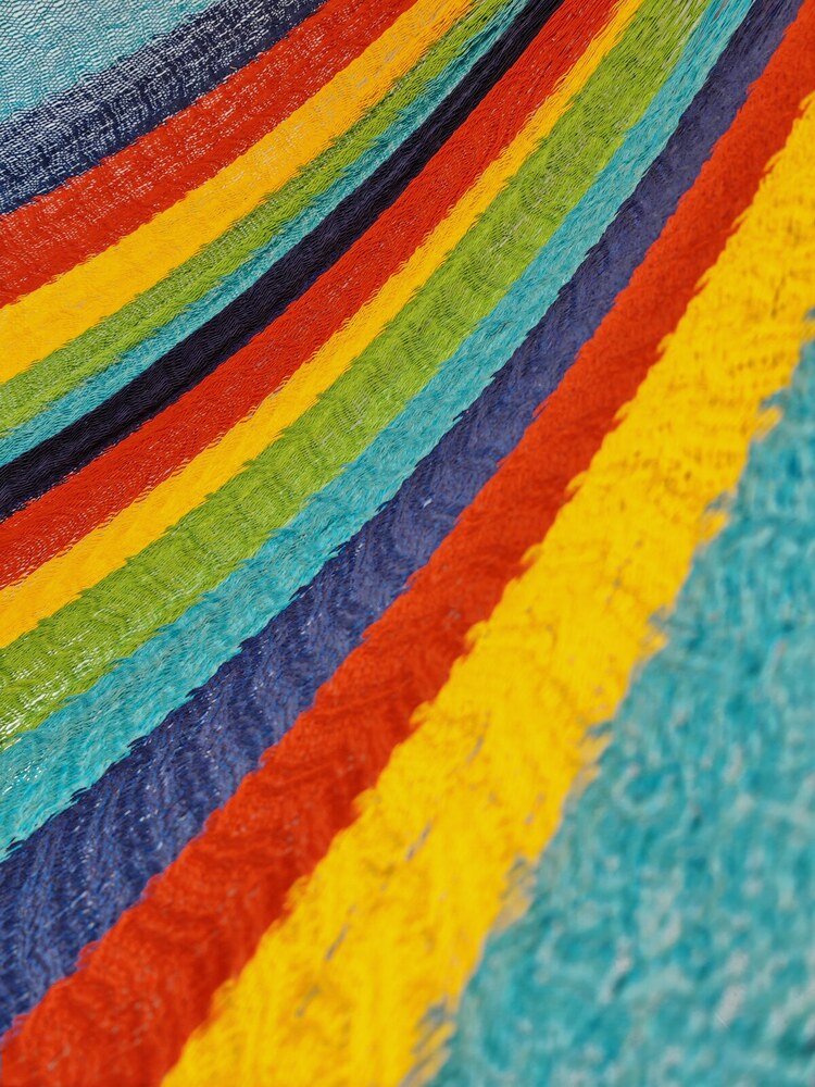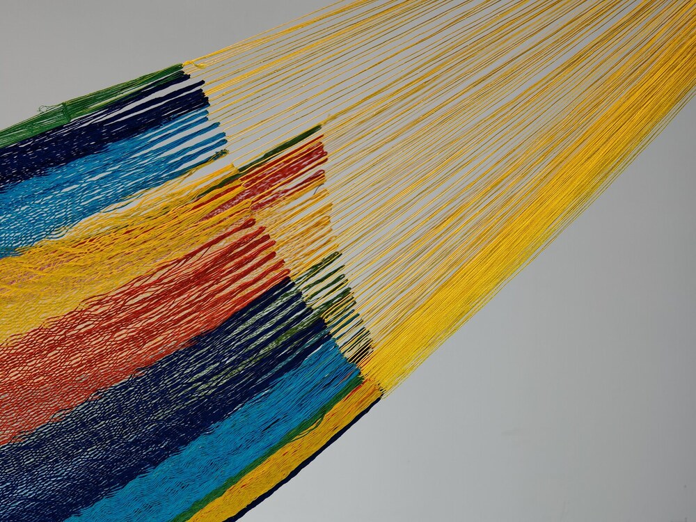 A hagyományos 'sprang' szövési technikának köszönhetően a függőágy tökéletesen felveszi a test alakját. A párhuzamos, de egymásba hurkolt szálak olyan felületet alkotnak, amely hosszanti irányban fix, keresztben rugalmas. A legnagyobb hőségben is szellős, kellemesen hűsít a szálak között átjáró levegő.