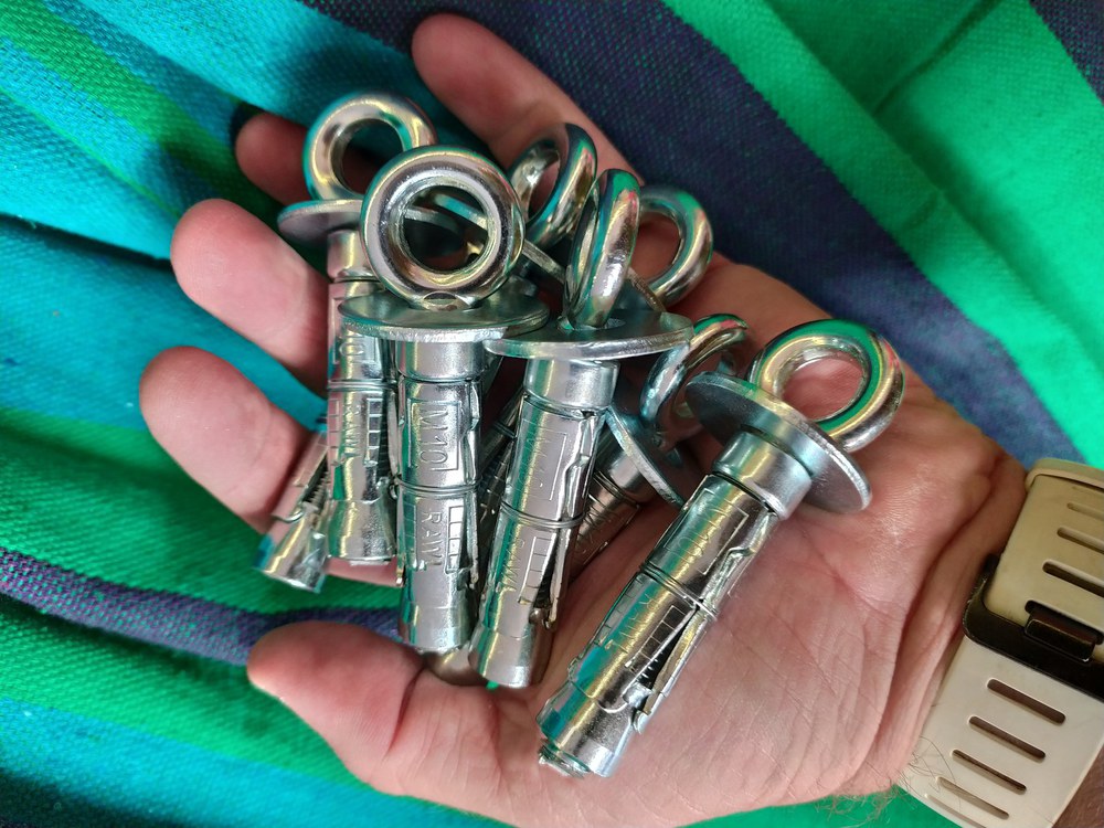Ezt a csavart akkor használjuk, ha nem lehet 6 centinél mélyebb lyukat fúrni, vagy ha 5-6 cm BETON után üreg van a födémben. A nyolcas kötelet még pont át lehet dugni rajta duplán. Monolit vasbeton födémben vagy panelban bátran használható.