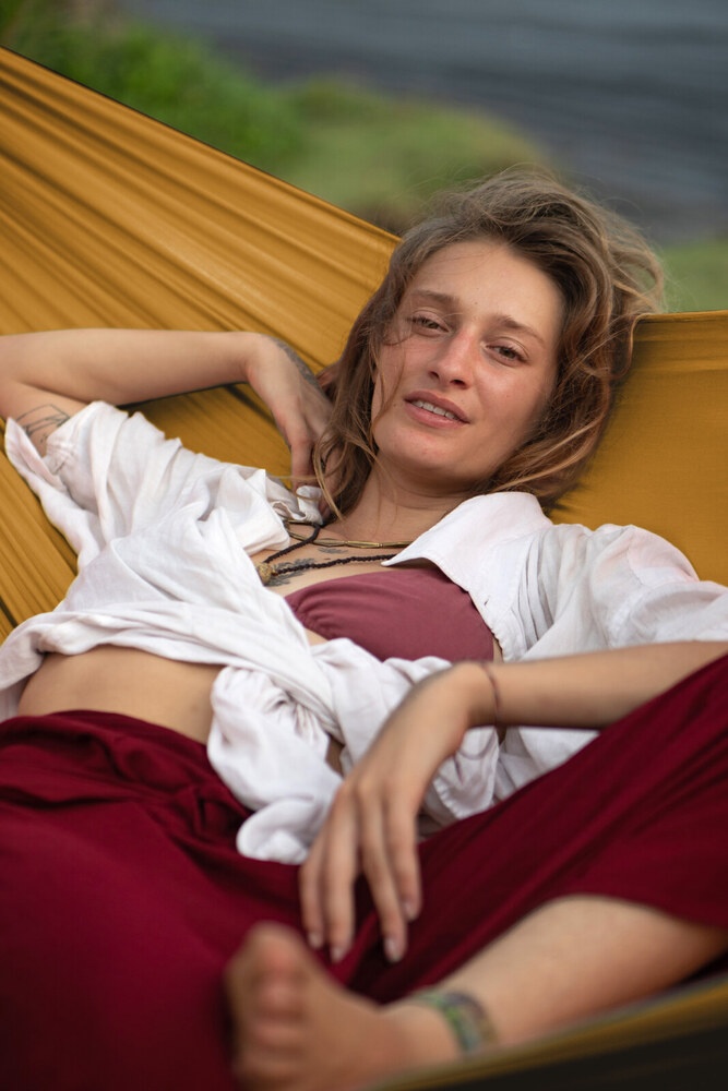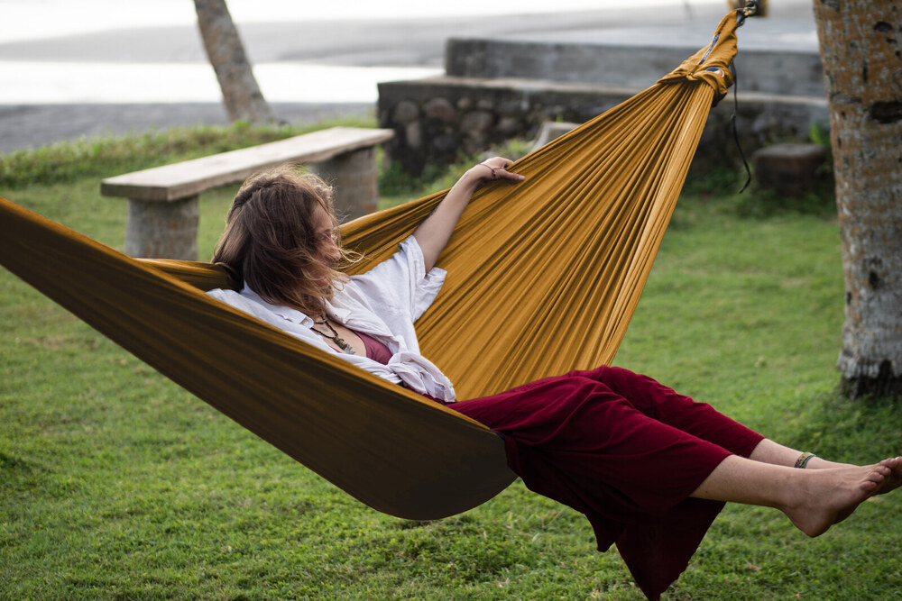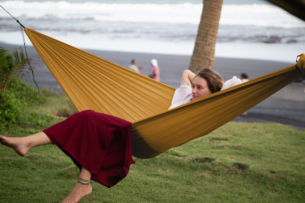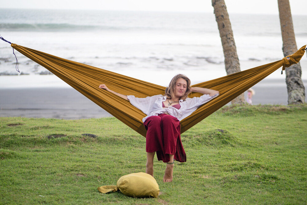 Az eredeti ejtőernyőselyem függőágy.