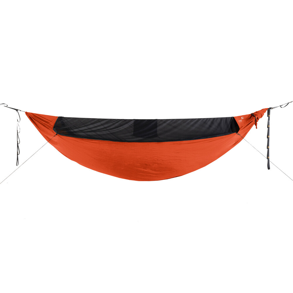 Újdonság a TTTM választékában a szúnyoghálóval egybeépített ultralight túrafüggőágy. Könnyen használható megoldás a rovarvédelem mellett történő szabadban alváshoz. A kényelem és a funkcionalitás maximalizálva, a tömeg pedig minimalizálva.