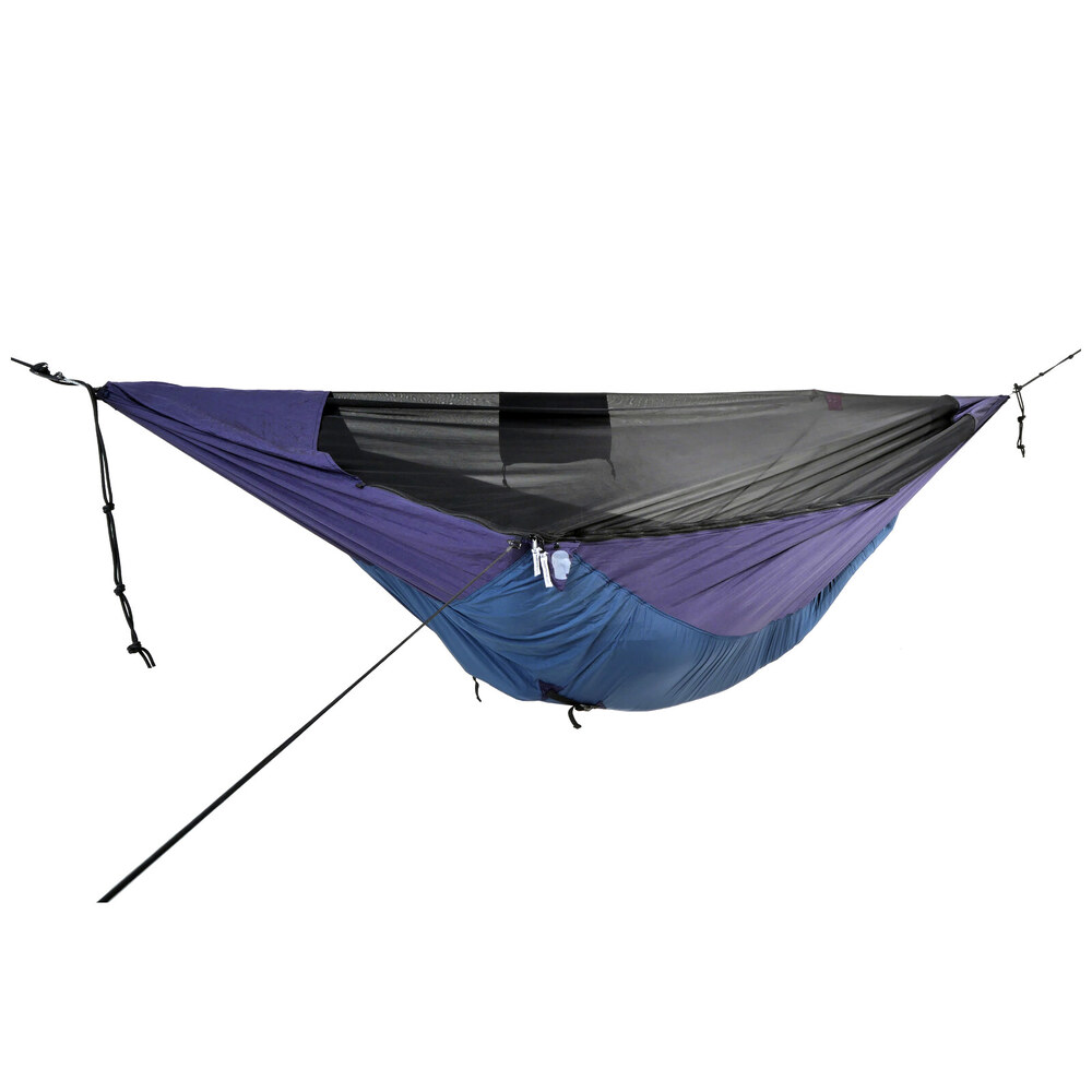 Ez az 1,7 m széles túrafüggőágy egy alsó zsebbel rendelkezik, amely minden szabványos matrachoz illeszkedik (70x200cm). Annak érdekében, hogy a lehető legkényelmesebben érezd magad, egy gerinczsinórt (ridgeline) is beépítettünk ebbe a függőágyba Ezzel az új útitárssal még akkor is pihenhetsz a földön, ha a függőágy felakasztása nem lehetséges.