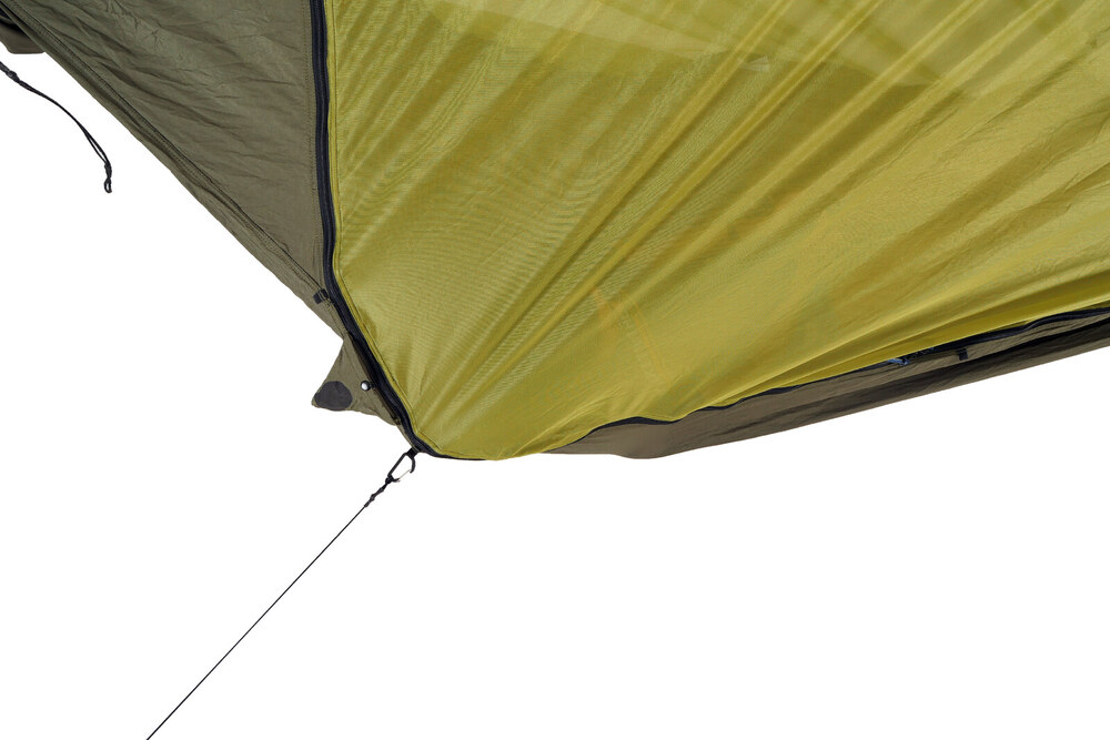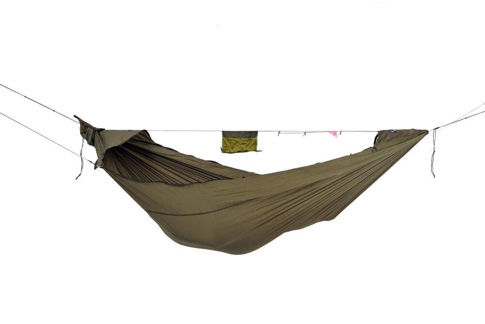 A legújabb a TTTM választékában a szúnyoghálóval egybeépített eredeti ejtőernyőselyemből készült túrafüggőágy. Könnyen használható megoldás a rovarvédelem mellett történő szabadban alváshoz. A kényelem és a funkcionalitás maximalizálva, a tömeg pedig minimalizálva.