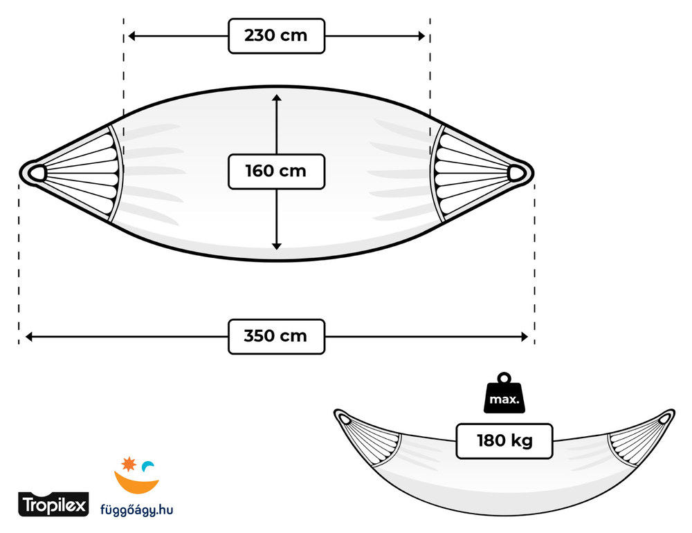 - Azonos anyagból készült hordozó/tároló válltáska jár a függőágyhoz.